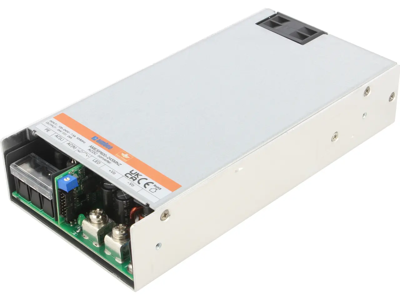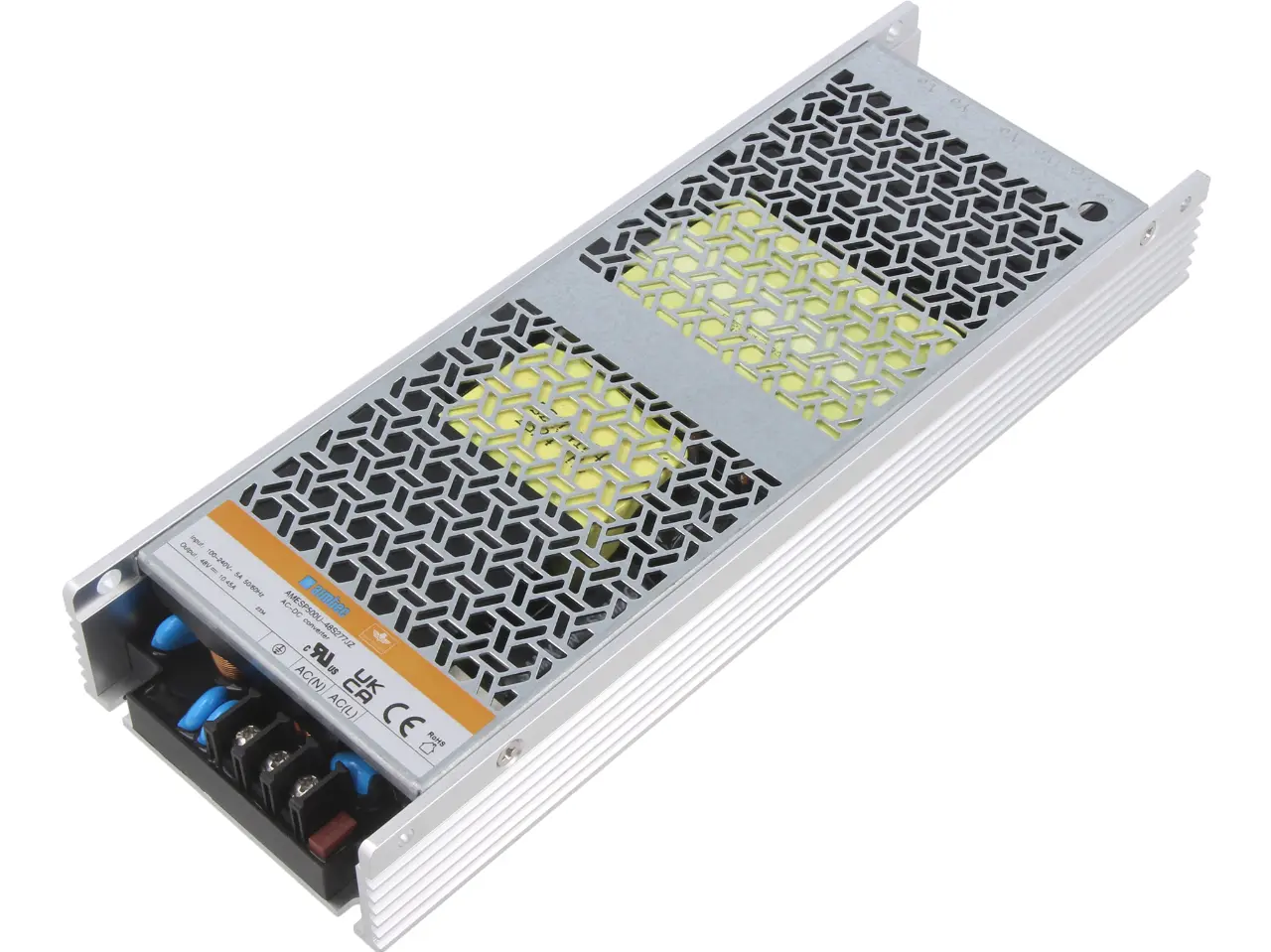 Alle Netzteile der AMES-Serie sind für den Einbau bestimmt. Im Angebot finden wir Modelle, die mit Lüftern ausgestattet sind, die die Kühlung der Schaltung durch Luftdurchfluss garantieren, sowie Versionen mit perforiertem Gehäuse, wo die Thermoregulierung vor allem dank Konvektionsströmung erfolgt, die u. a. dank Profilen möglich ist, die gleichzeitig als Radiatoren und als Körperstabilisierung dienen. Die Befestigung der Wandler erfolgt mittels M3-Schrauben und/oder werksseitigen Öffnungen und Anschnitten im Gehäuse. Das charakteristische Merkmal der AMESP-Serie ist das relativ niedrige Gehäuseprofil, dank dem die Einheiten in modifizierten Geräten sowie neuen Projekten mit kompakter Konstruktion Platz finden. Die Maße der Wandler reichen von 115x215x30 mm bis 232x81x31 mm.