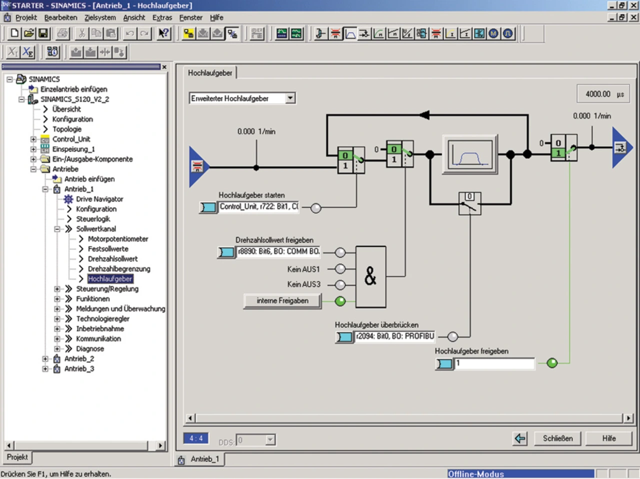 Mit »Sinamics» bezeichnet Siemens eine neue Antriebsgeneration, welche auf einer gemeinsamen technischen Plattform in Hinblick auf Soft- und Hardware basiert. Mithilfe zweier durchgängiger Engineering-Tools lassen sich Automatisierungslösungen über alle Antriebsausprägungen hinweg realisieren: »Sizer« ist für die Antriebsauslegung gedacht, »Starter« für die Antriebsinbetriebnahme. Mit Sizer können Ingenieure individuelle Antriebslösungen auf der Basis von Sinamics-Antrieben konzipieren. Mit Starter werden diese Antriebslösungen anschließend parametriert, in Betrieb genommen, getestet und optimiert.