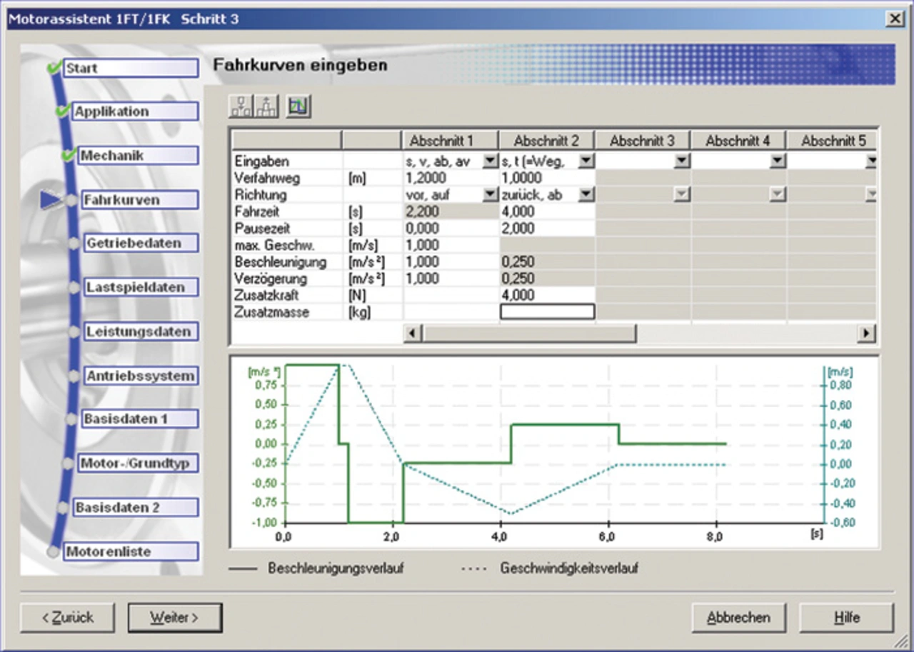 Die Auslegung mit Sizer lässt sich anhand automatisch errechneter Ergebnisdarstellungen (z.B. Kennlinien, Lastverläufe oder Maßbilder) verifizieren. Weitere Übersichtsdarstellungen und Projektierungsergebnisse informieren über die eingegebenen und die daraus abgeleiteten, berechneten Daten bis hin zum erforderlichen Platzbedarf der Komponenten im Schaltschrank. Die Stückliste mit den zugehörigen Bestelldaten wird entsprechend der Auslegung zusammengestellt. So kann die gesamte Auslegung im Sinne einer Komplettdokumentation für den Kunden sowohl ausgedruckt als auch in Form aufgabengerechter Datensätze für die weitere Projektabwicklung bereitgestellt werden. Dadurch, dass die Stückliste im Bestellprozess direkt weiterverwendet wird, trägt sie dazu bei, Fehlbestellungen zu vermeiden, denn die Importmöglichkeiten in den elektronischen Siemens-Katalog erlauben die weitgehende Automatisierung der Bestellung.