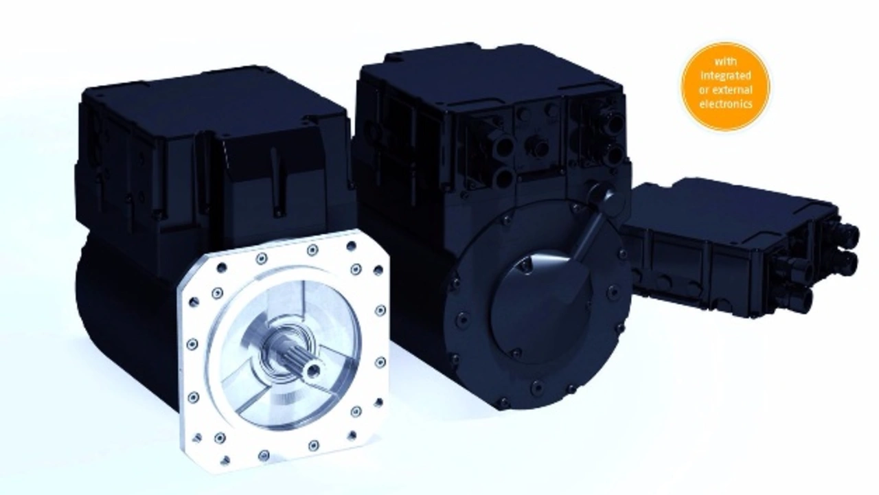 Das Antriebskonzept „powerMELA“ umfasst einen Permanentmagnet-Synchronmotor und einen Wechselrichter für den Vierquadranten-Betrieb. Es kann als hybrider oder rein elektrischer Antrieb in Nutzfahrzeugen und mobilen Arbeitsmaschinen dienen. Der Motor bietet dank seines direkten Kühlkonzepts eine hohe Leistungsdichte. Damit benötigt das Antriebssystem wenig Platz und wiegt mit Motor, Umrichter und Getriebe nur rund 300 kg. Außerdem hat Baumüller den permanenterregten Synchronmotor mit tief vergrabenen Magneten konstruiert, was den Antrieb robust und leistungsstark macht, mit hohen Drehmomenten über den gesamten Drehzahlbereich hinweg. Der Motor ist in den Leistungsklassen 40, 80 und 140 kW erhältlich.