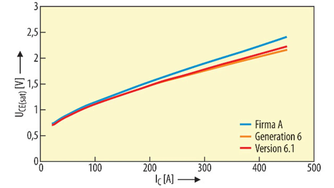 Neben der bereits erwähnten Zuverlässigkeit sind die Gesamtverluste in einer Applikation ein wichtiges Auswahlkriterium für ein Leistungsmodul. Dabei ist die Abstimmung von dynamischen Verlusten (Schaltverlusten) und den statischen Verlusten (Durchlassverluste), die z.B. über Dotierungen oder Bestrahlungsprozesse in der Chipfertigung eingestellt werden können, besonders wichtig, um das Leistungsmodul für bestimmte Anwendungen zu optimieren. Bei der neuen Chipversion wurden die eben erwähnten Maßnahmen zur Verbesserung der Durchlassverluste zum Teil in bessere dynamische Verluste transformiert, um auch für Anwendungen mit höheren Schaltfrequenzen attraktive Leistungsmodule bereitzustellen.