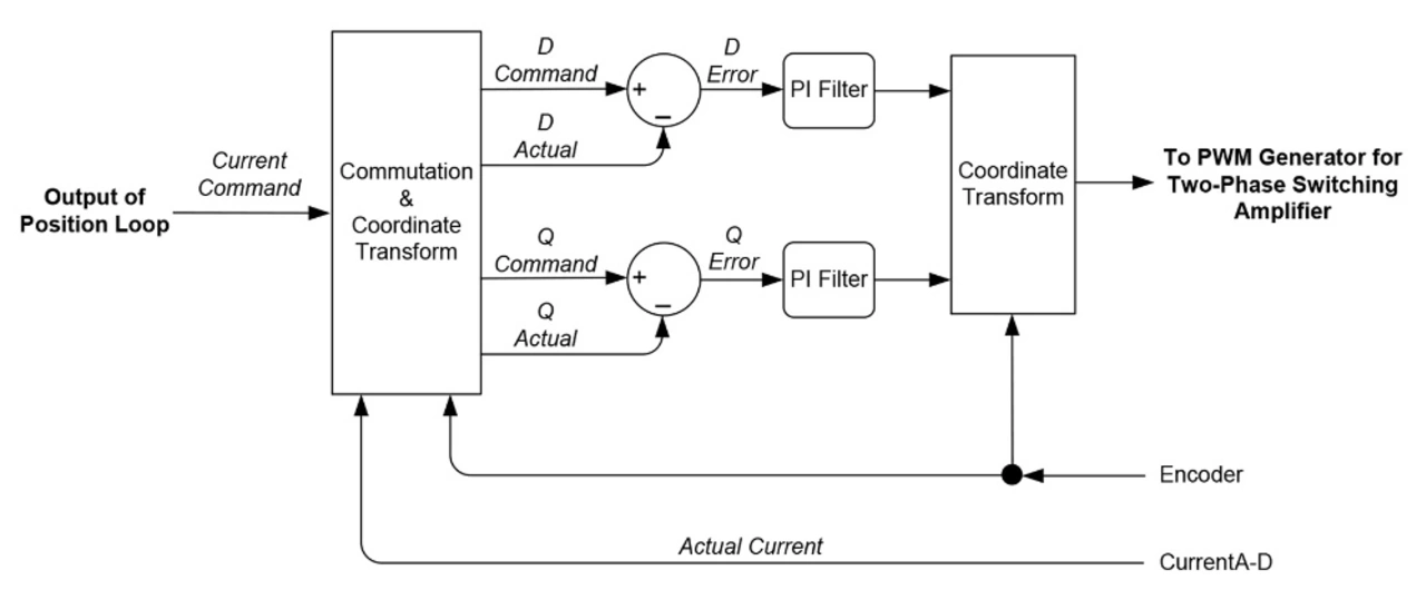 ist, dass der höchste Punkt und der Phasenwinkel der Wellenform nicht konstant sind, sondern kontinuierlich in Abhängigkeit vom Ausgangssignal einer PID-Schleife variieren, die als Servo für die Sollposition fungiert. Auch das entspricht dem Betrieb eines bürstenlosen DC-Motors.