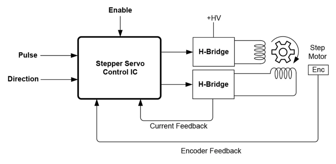 Glücklicherweise sind jetzt neue ICs am Markt verfügbar, die den Upgrade einer existierenden Schrittmotorsteuerung auf Stepper Servo Betrieb unterstützen können.