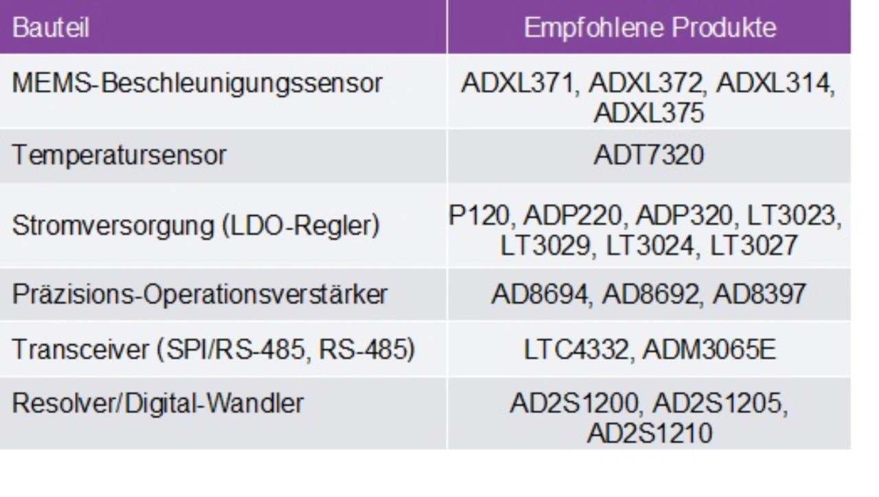 Die Fach-Expertise und die Technologien von Analog Devices helfen den Partnern des Unternehmens beim Design der industriellen Motor-Encoder und Netzwerke der Zukunft. Mithilfe kleiner, aber leistungsfähiger Mikrocontroller, des MEMS-Sensors ADXL371 und des Temperatursensors ADT7320 bereitet es keine Schwierigkeiten, Encoder auch zum Einholen von Maschinenzustands-Informationen zu nutzen. Die branchenführenden AMR-Magnetfeldsensoren von ADI, darunter der ADA4571, erhöhen die Zuverlässigkeit, verringern die Abmessungen und das Gewicht und lassen sich einfacher in einen Encoder integrieren als optische oder resolverbasierte Sensorlösungen. Mithilfe von A/D-Wandlern der mittleren bis oberen Leistungsklasse wie dem AD7380 oder dem AD7760 lässt sich die hohe Präzision und Wiederholgenauigkeit realisieren, die beispielsweise für Bestückungsmaschinen und Roboter erforderlich ist.