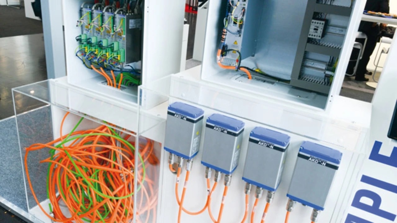 Für den Anschluss der IP67-Geräte der AKD-N-Reihe nutzt Kollmorgen ein 11 mm dickes Hybridkabel, das die Versorgung über ein zentrales Einspeisemodul im Schaltschrank sicherstellt. Ebenfalls mit nur einem Kabel lassen sich die dezentral in einer Maschine platzierten Einzelregler per DC-Verbund ohne weitere Einspeisung miteinander verbinden - Kommunikation inklusive. Die Einspeisemodule des Typs AKD-C verfügen über zwei Strings, an die sich jeweils bis zu acht AKD-N mit einer Leistung bis je 4 kW anschließen lassen. Safe Torque-Off als Gruppen- oder Einzelabschaltung gehört zur Serienausstattung und wird ebenfalls über das Hybridkabel geführt. Auch zwischen dem dezentralen Servoregler und seinem angeschlossenen Motor reicht ein Kabel aus - dank einer neuen Einkabelanschlusstechnik sind nicht mehr zwei Leitungen, Motorkabel und Rückführung, nötig. Weil Servotechnik gerade dann zum Einsatz kommt, wenn komplexe und positionsgenaue Bewegungen gefragt sind, ist sie häufig Teil von Positionier- und Handling-Systemen. Hieraus folgt, dass jede Leitung auch Platz in einer Schleppkette oder in einem Kabelkanal beansprucht. Die Modellberechnungen zeigen, dass die dezentrale Servotechnik in Kombination mit der Einkabelanschlusstechnik zwischen Motor und Regler viel Platz spart. Dieser Vorteil lässt sich trefflich nutzen für kleinere Kabeltrassen, leichtere Schleppketten, knappere Durchführungen - oder einfach für mehr Designfreiheit bei der Entwicklung neuer Maschinen: Die verteilte Technik bringt ja im Vergleich zu räumlich fixierten Zentralschaltschränken mehr Chancen zur Modularisierung. OEMs können so neue Anlagen aus bereits entwickelten Modulen konzipieren, was das Engineering effizienter macht.