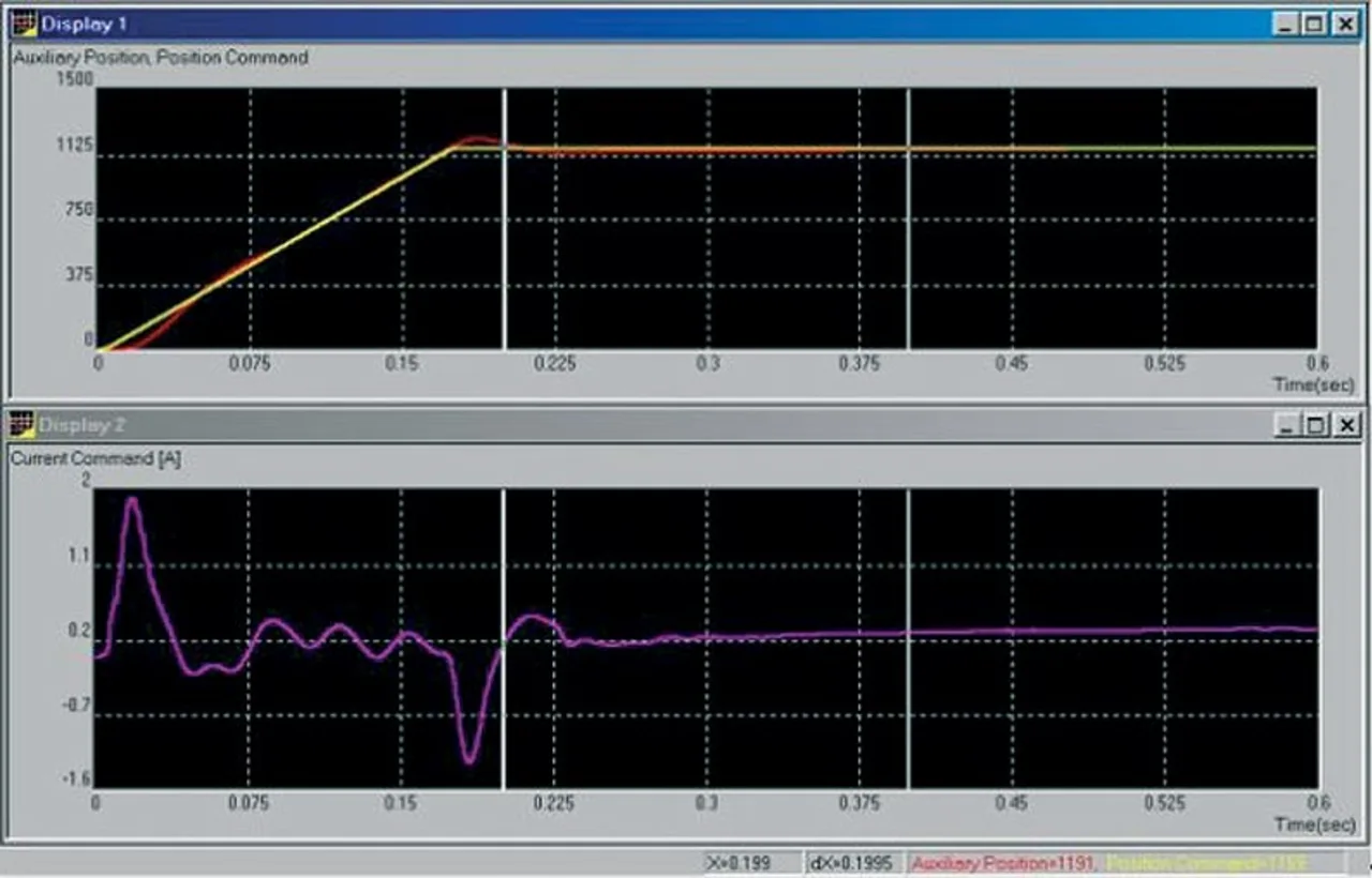 Obwohl ein Überschwingen für bestimmte Anwendungen bedenklich erscheint, kann in lagegeregelten Systemen ein Überschwingen nicht vollständig vermieden werden. Die Minimierung des Überschwingverhaltens bei der Sprungantwort kann die Fähigkeit des Systems, einer vorgegebenen Trajektorie zu folgen, ernsthaft beeinträchtigen. Die meisten lagegeregelten Systeme zeigen deshalb ein signifikantes Überschwingen in der Sprungantwort. In der Anwendung selbst wird das Überschwingen durch eine Glättung der Bewegungsaufgabe vermieden. Bild 7 zeigt eine profilierte Bewegung, bei der das daraus resultierende Überschwingen erheblich geringer ist als bei der Sprungantwort. Das Überschwingen lässt sich durch eine weitere Glättung des Sollwertsignals fast vollständig eliminieren.