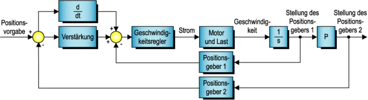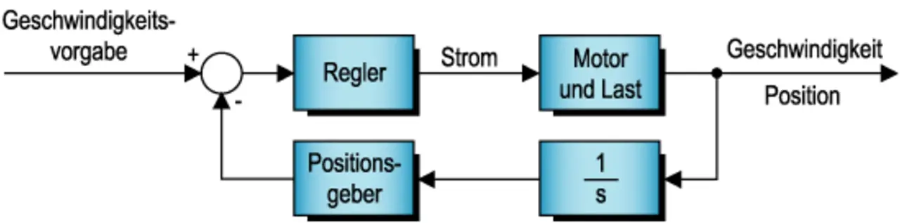 Der Test des geregelten Systems erfolgt zunächst durch die Analyse der Sprungantwort des Geschwindigkeitsreglers und, falls erforderlich, durch die Analyse der Sprungantwort des Positionsreglers.