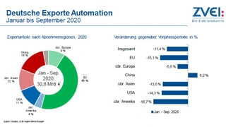 Nur fünf Handelsländer beherrschen derzeit den Weltmarkt für Automatisierungsgüter, größter Nachfrager ist China mit 43 %, gefolgt von den USA mit 13 %, Südkorea mit 5 % sowie Deutschland und Japan mit jeweils 4 %. China sei in der Vergangenheit jährlich um fast 15 % gewachsen, so dass sich bedingt durch die Pandemie der chinesische Markt weiter der 50-%-Marke nähern dürfte.
