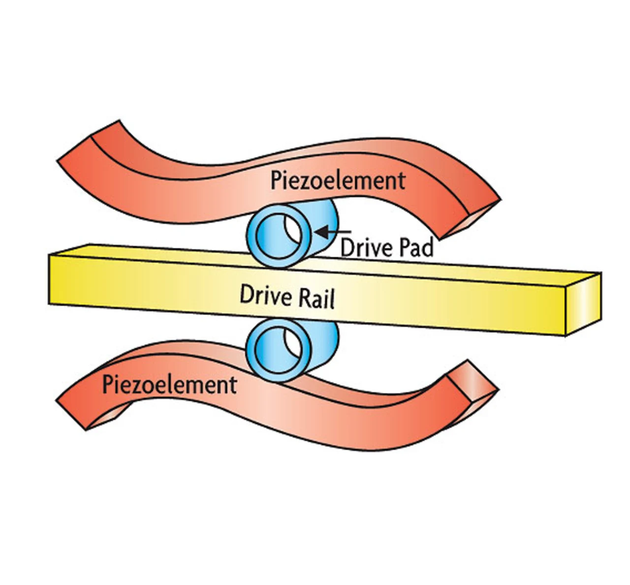 Aufgrund der angelegten Spannung und der daraus resultierenden Verformung der Piezoelemente liegt die Auflösung der Bewegung im Submikrometer- Bereich und beträgt bei dem beschriebenen Design minimal 0,2 μm. Die Vorschubgeschwindigkeit ist dabei abhängig von der Antriebsspannung, dem Schlupf zwischen Drive- Pad und Drive-Rail sowie der angetriebenen Last.