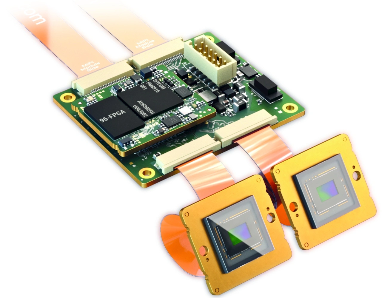 Für mehr Flexibilität und die gesamte Bandbreite von Vision-Anwendungen bestehen Embedded-Vision-Systeme meist aus einem Kameramodul mit Bildsensor und einem Prozessor-Board. Es verarbeitet einerseits die Bilddaten, übernimmt aber gleichzeitig auch die Funktionen der Kundenanwendung – also auch hier wieder an die Applikation angepasst. Je nach Anwendung lässt sich der Bildsensor beispielsweise per MIPI-CSI-2-Schnittstelle anbinden. Dafür gibt es von VC ein breites Sortiment von MIPI-Modulen. Alternativ kann der Bildsensor auch direkt auf dem Prozessor-Board bestückt sein.
