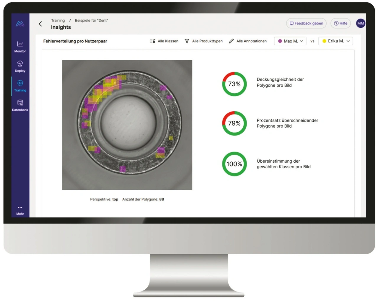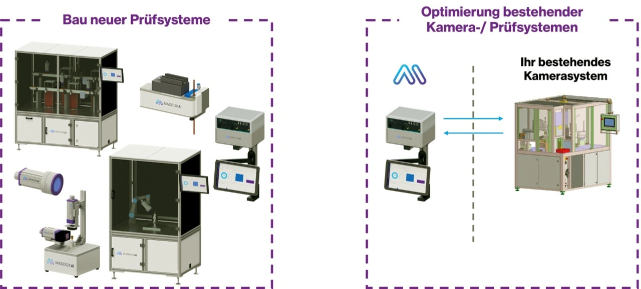 Beim klassischen Retrofit - etwa eines regelbasierten Bildverarbeitungssystems - läuft das in der Produktion installierte Kamerasystem unverändert weiter. Ersetzt wird lediglich die Software. Mit den Annotationstools von Maddox AI entsteht schnell eine saubere Datengrundlage. Durch die intuitive Nutzeroberfläche lassen sich neue Modelle leicht trainieren und in die Produktion überführen. Die solide Datengrundlage steigert die Erkennungsgenauigkeit der Algorithmik und senkt den Pseudoausschuss. Weil die Maddox-AI-Software Annotationen effizient vereinheitlicht und daher in kurzer Zeit präzise KI-Modelle liefert, arbeitet Maddox AI erfolgsbasiert: Abgerechnet werden nur Implementierungen, die eine zuvor vereinbarte Mindestsenkung des Pseudoausschusses erreichen. Bleibt die vereinbarte Verbesserung aus, fallen keine Kosten an.