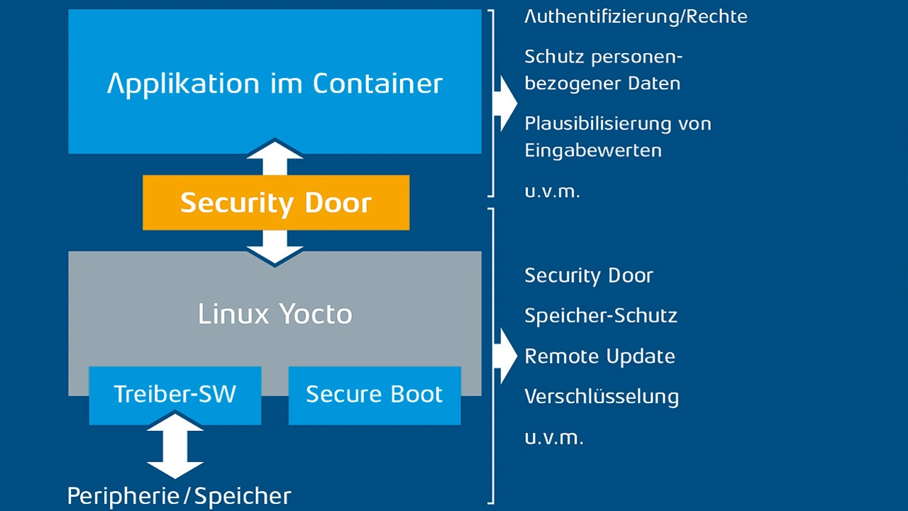 ➔ Secure Boot: Jedes Embedded Device bootet ähnlich einem PC und sucht dazu sein kleinstes Startprogramm (Boot), in dem der korrekte Startvorgang inklusive der zu startenden Applikationen sowie deren Reihenfolge festgelegt ist. Eine Manipulation an dieser Stelle ließe den Missbrauch des gesamten Geräts zu. Mit dem Secure-Boot-Feature wird das Boot-Programm mittels kryptografischer Algorithmen bei jedem Start geprüft.