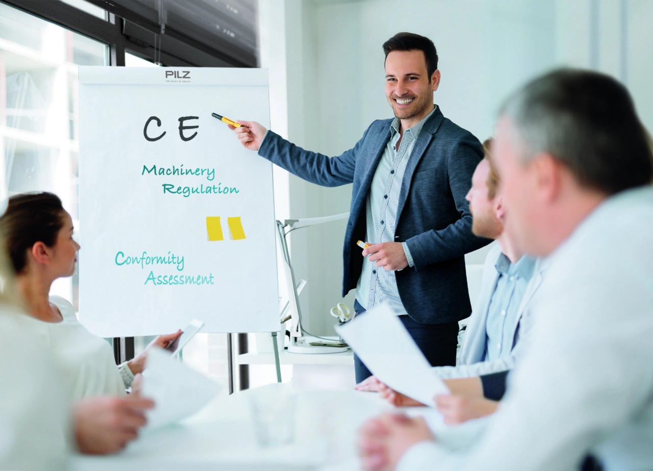 Pilz unterstützt seit Jahren Hersteller von Maschinen mit einem umfassenden Dienstleistungsangebot für Maschinensicherheit von der Sicherheitsanalyse über Validierung bis zur CE-Kennzeichnung. Experten von Pilz beraten Kunden bei einer wesentlichen Veränderung an Maschinen und Anlagen nach den Anforderungen der Maschinenverordnung. Auch die neuen normativen Anforderungen an Security hat Pilz im Blick: das Unternehmen erweitert aktuell sein Dienstleistungsangebot um entsprechende Schulungen im Bereich Industrial Security.
