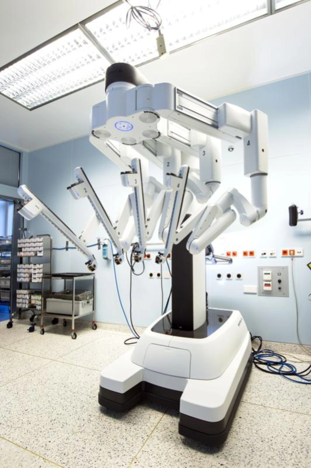 Außerdem gibt es den OP-Roboter. Der Chirurg steht nicht mehr am OP-Tisch, sondern sitzt an einer Steuerkonsole. Wenige Meter von ihm entfernt liegt der Patient auf dem Operationstisch, über ihm der bewegliche vierarmige OP-Roboter »DaVinci«. Seine Greifarme mit einer endoskopischen Kamera und Operationsinstrumenten werden durch kleine Schnitte in der Bauchdecke in den Bauchraum eingeführt. Der Chirurg sieht auf dem Bildschirm das Operationsfeld im Körperinnern in 3-D-Optik und in starker Vergrößerung. Seine Handbewegungen an der Konsole werden computergestützt auf die elektronischen Roboterarme übertragen und millimetergenau im Bauch ausgeführt.