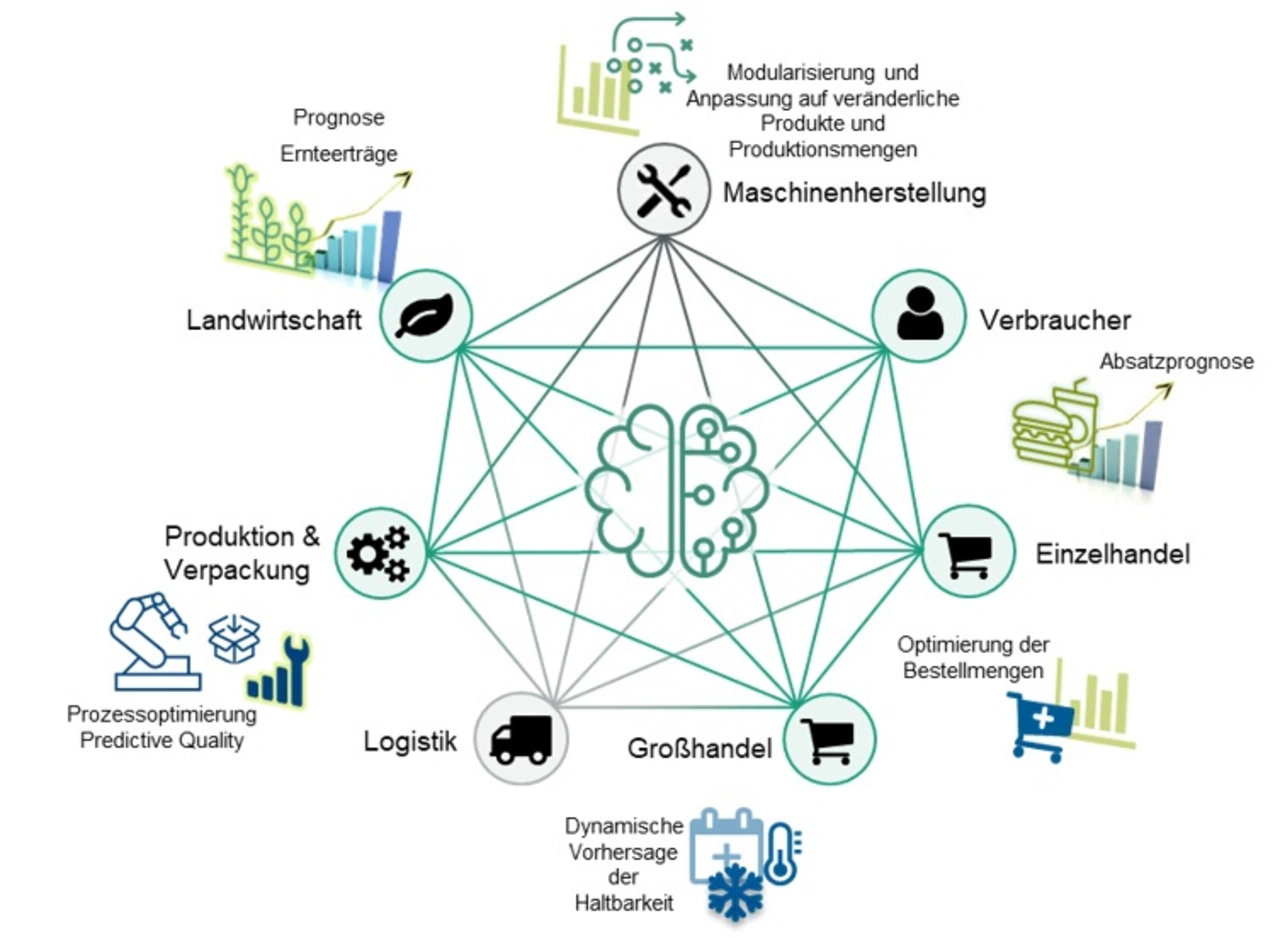 Hier setzt das Projekt REIF (das Akronym steht für „Resourceefficient, Economic and Intelligent Foodchain“) an, das im Rahmen des Innovationswettbewerbs „Künstliche Intelligenz“ vom Bundesministerium für Wirtschaft und Energie (BMWi) gefördert wird. Ziel von REIF ist es, den Daten- und Informationsfluss in der Wertschöpfungskette zu verbessern und damit zugleich die Datenbasis für die Entwicklung KI-basierter Dienste zu legen. Mit diesen Diensten lassen sich sowohl lokal als auch global über die Wertschöpfungskette hinweg Herstellung, Verarbeitung und Vertrieb von Lebensmitteln optimieren.