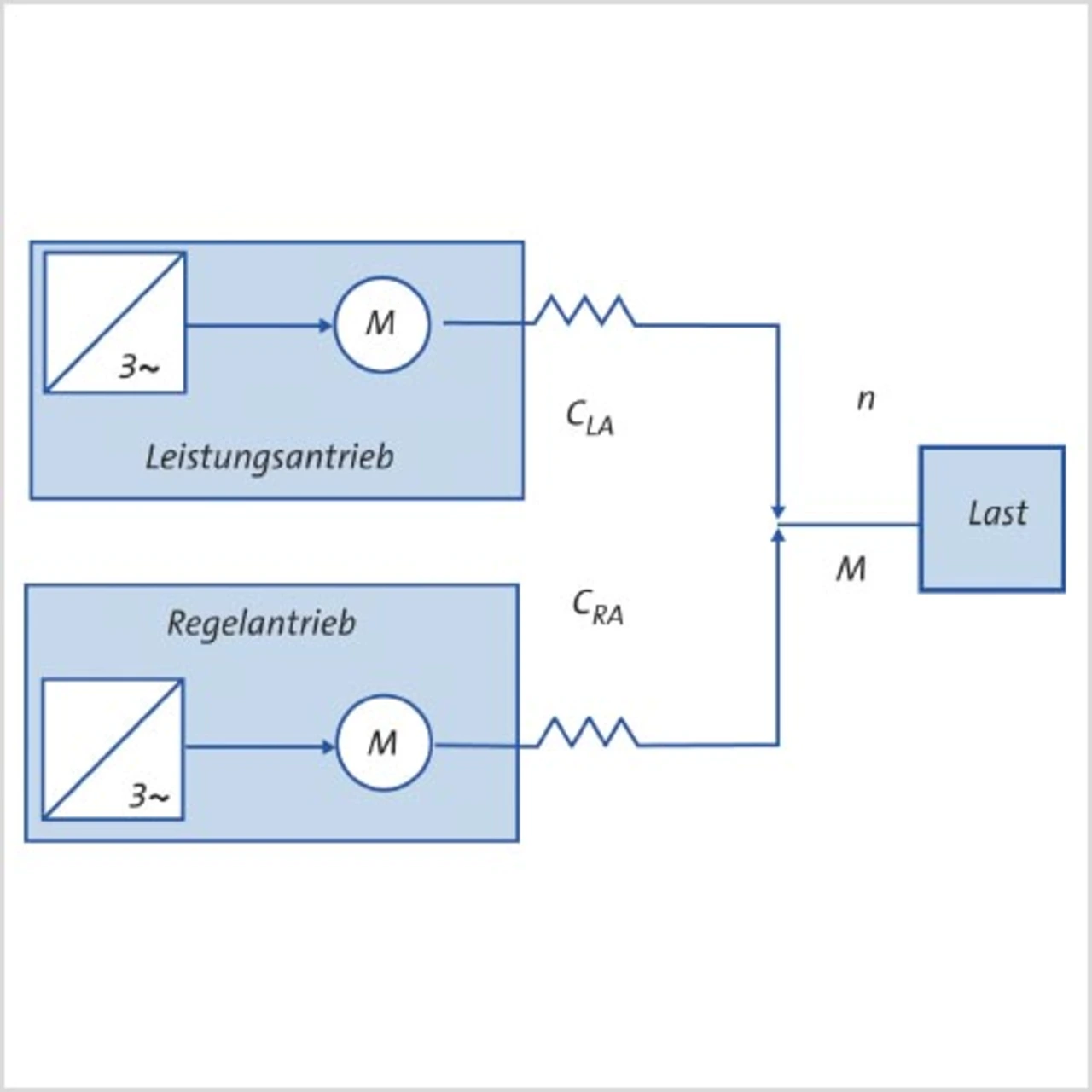 Kurzum: Die beiden Antriebe wirken über eine gemeinsame Verbindung als Gesamtantrieb auf die Last (Bild 2), sprich: Nach außen wirkt dieses „Doppel“ wie ein einziger Antrieb!