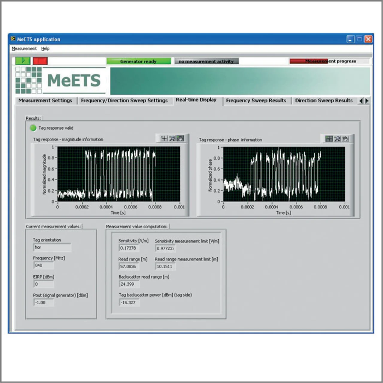 Während erste Messungen, wie sie für Datenblätter verwendet werden, in der Regel nur am Tag selbst durchgeführt werden, ist für viele Anwendungen zusätzlich die Messung am Material relevant. Hierzu definieren die Standards repräsentative Materialien wie Behälter mit Wasser, verschiedene Kunststoffe, Holz, Karton und Metall, um vergleichbare Daten für bestimmte zu taggende Produkte zu bekommen.