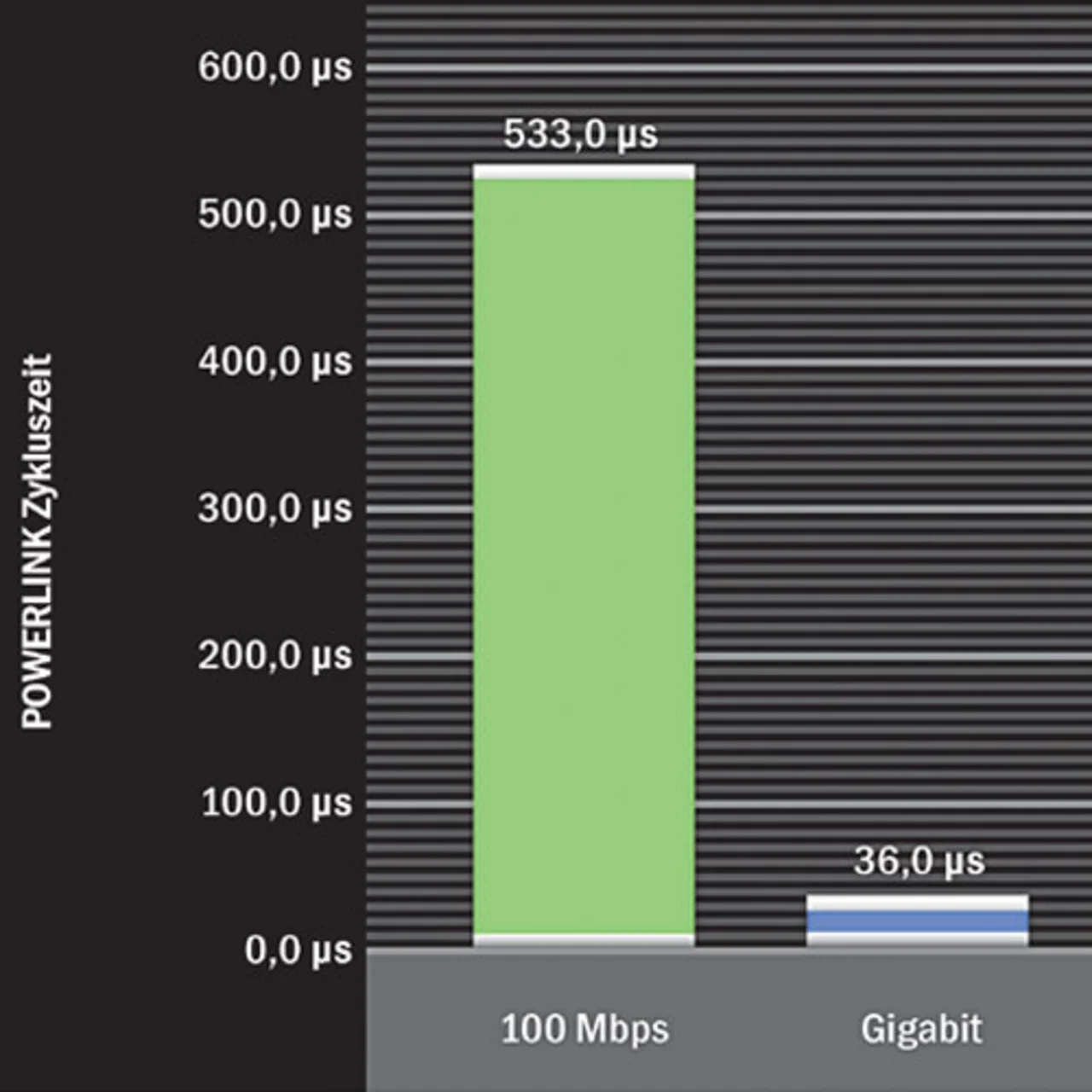 Resultierende Zykluszeiten: 100 Mbps: 533 μs – Gigabit: 36 μs