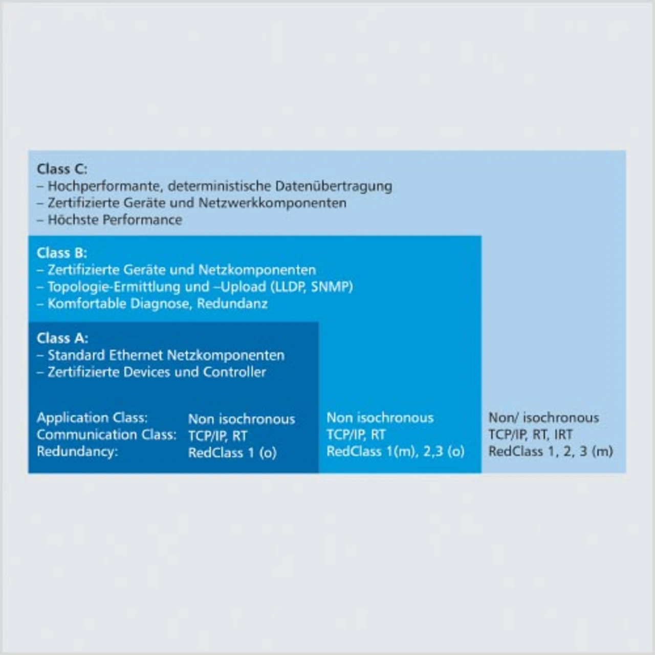 Das Verwenden der verschiedenen IT-Protokolle in den Conformance Classes eröffnet aber auch neue Möglichkeiten. Das Simple Network Management Protocol (SNMP) etwa erlaubt über den Zugriff auf Management Information Bases (MIB) das Auslesen von Information über den Zustand des Gerätes, der Kommunikationsschnittstellen und der Kommunikation. So gibt es eine MIB-Spezifikation, die Information zur Verwaltung der Ethernet-Schnittstelle zur Verfügung stellt. Durch das Auslesen entsprechender Zähler lässt sich das gehäufte Auftreten zerstörter Frames feststellen. Ein Monitor muss in diesem Fall aktiv im Netzwerk kommunizieren.