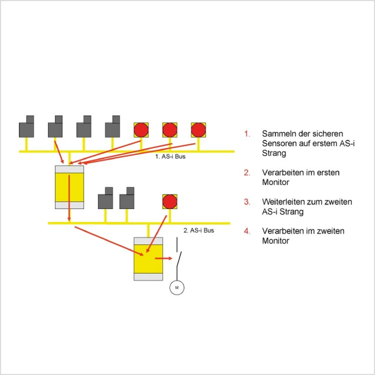 Seit 1999 gibt es die Bussystemvariante „Safety at Work“ zur AS-Interface-Technologie. Der Zweidrahtbus reduziert den Verdrahtungsaufwand bei sicherheitsgerichteten Anwendungen und wird über einen Monitor zentral überwacht. Um diesen Sicherheitsmonitor dem heutigen Erfahrungsstand anzupassen, hat eine Gruppe von Firmen eine neue Gerätegeneration geschaffen, die nachfolgend am Beispiel der Geräte-Varianten SMO und GMO von Euchner exemplarisch dargestellt wird.