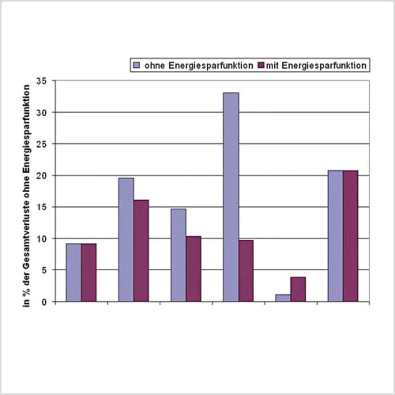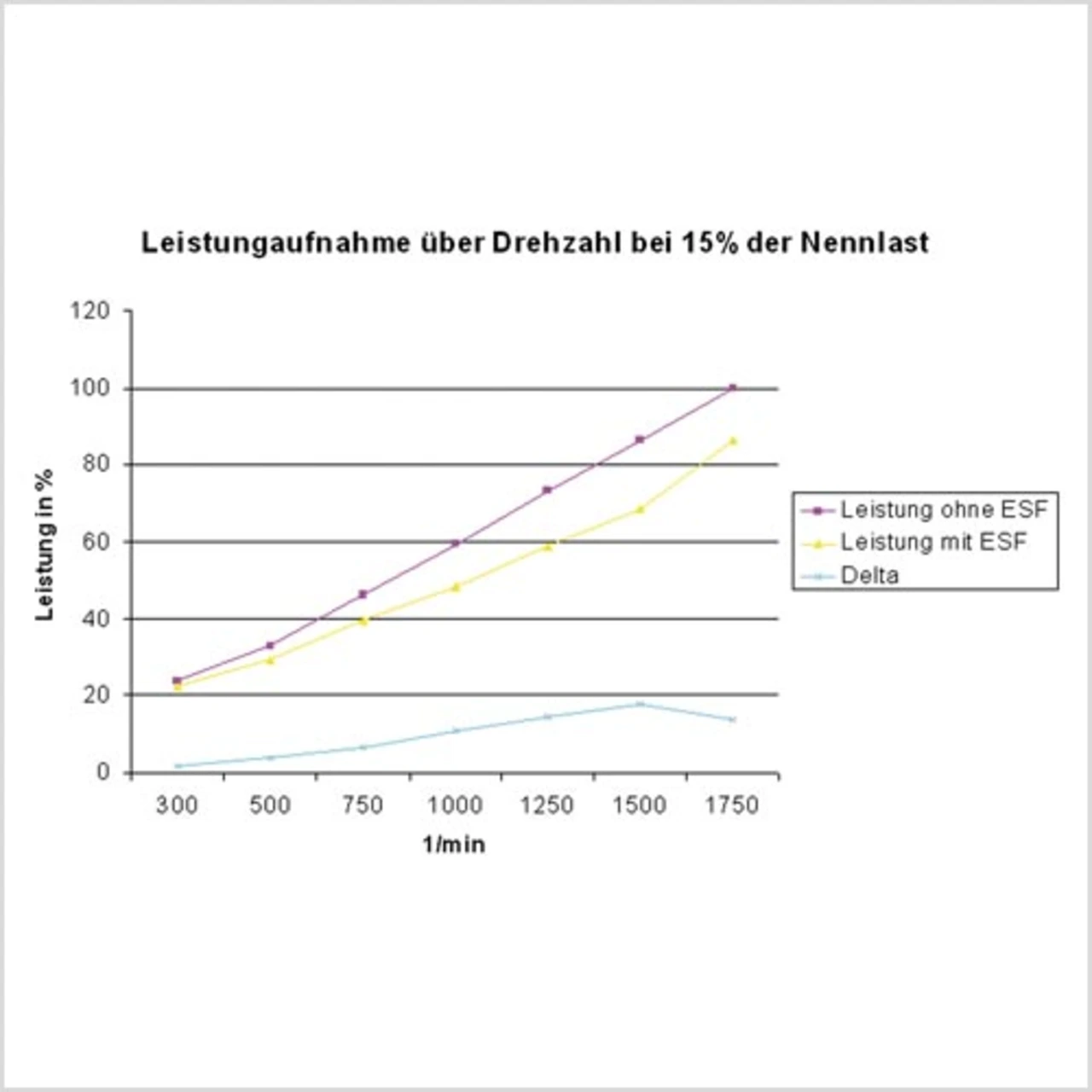 Durch die Überlagerung des Drehzahlreglers mit der Energiesparfunktion (ESF) verringert sich allerdings die Dynamik des Antriebs, das heißt, er benötigt mehr Zeit, um Lastsprünge auszuregeln. Mittels der beschriebene Energiesparfunktion lassen sich sowohl die Verluste des Umrichters als auch die der Asynchronmaschine minimieren und somit die insgesamt aufgenommene Leistung reduzieren.