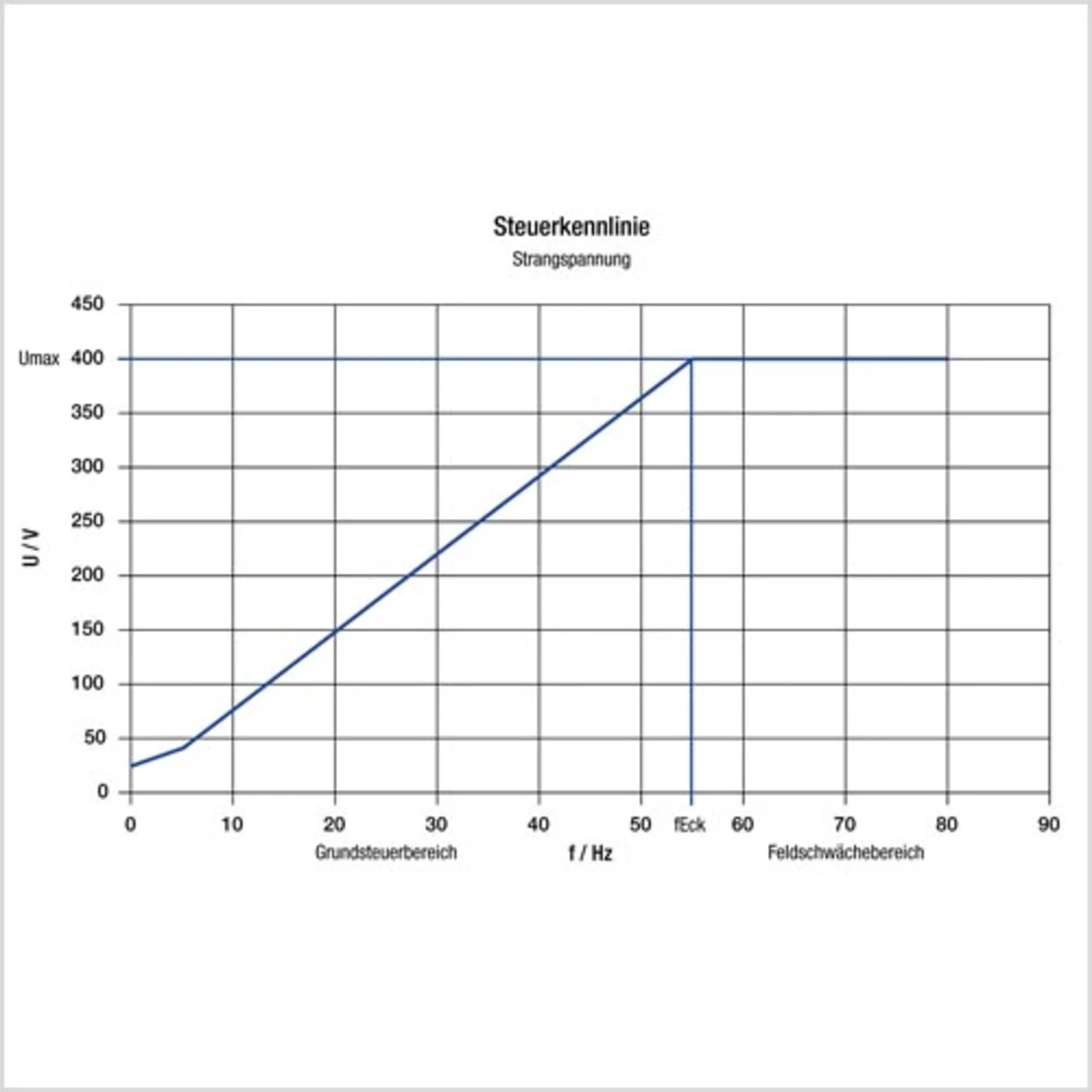 Am Funktionsprinzip der Asynchronmaschine (ASM) lässt sich ein Zusammenhang zwischen der Statorspannung als Funktion des Magnetisierungsstromes darstellen. Dabei ergibt sich für eine konstante Frequenz ein proportionales Verhältnis zwischen Statorspannung und Magnetisierungsstrom. Wird der Magnetisierungsstrom über den Grundsteuerbereich hinweg konstant gehalten, so ergibt sich für diesen Frequenzbereich ein ähnliches Antriebsverhalten wie beim 50-Hz- Nennbetrieb. Die Spannung ist nur von der Frequenz abhängig, somit ändert sich die Spannung im Grundsteuerbereich nahezu proportional zur Frequenz. Bei der Ansteuerung der ASM durch den Frequenzumrichter mit einem konstanten Verhältnis zwischen Frequenz und Spannung lässt sich die ASM von Drehzahl Null bis zu ihrem Nennpunkt mit konstantem Moment betreiben.