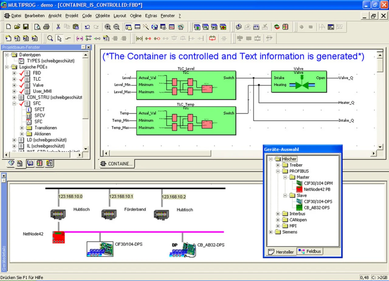 Mit der Profinet-Plattform bestehend aus Multiprog zur IEC-61131-Programmierung, Sycon.net für die Buskonfiguration, ProVisIT für die Visualisierung und nochmals Sycon.net zur Verschaltung von Profinet-Komponenten steht ein System zur Verfügung, was das Handling komplexer verteilter Anlagen auch bei der Verwendung unterschiedlicher Feldbussysteme durchgängig und damit einfacher handhabbar macht. Da alle Tools auf COM-Technologie basieren, lassen sich auch einfache skalierbare Lösungen aus nur einem oder zwei der beschriebenen Tools, bis hin zur vollständigen Suite einsetzen.