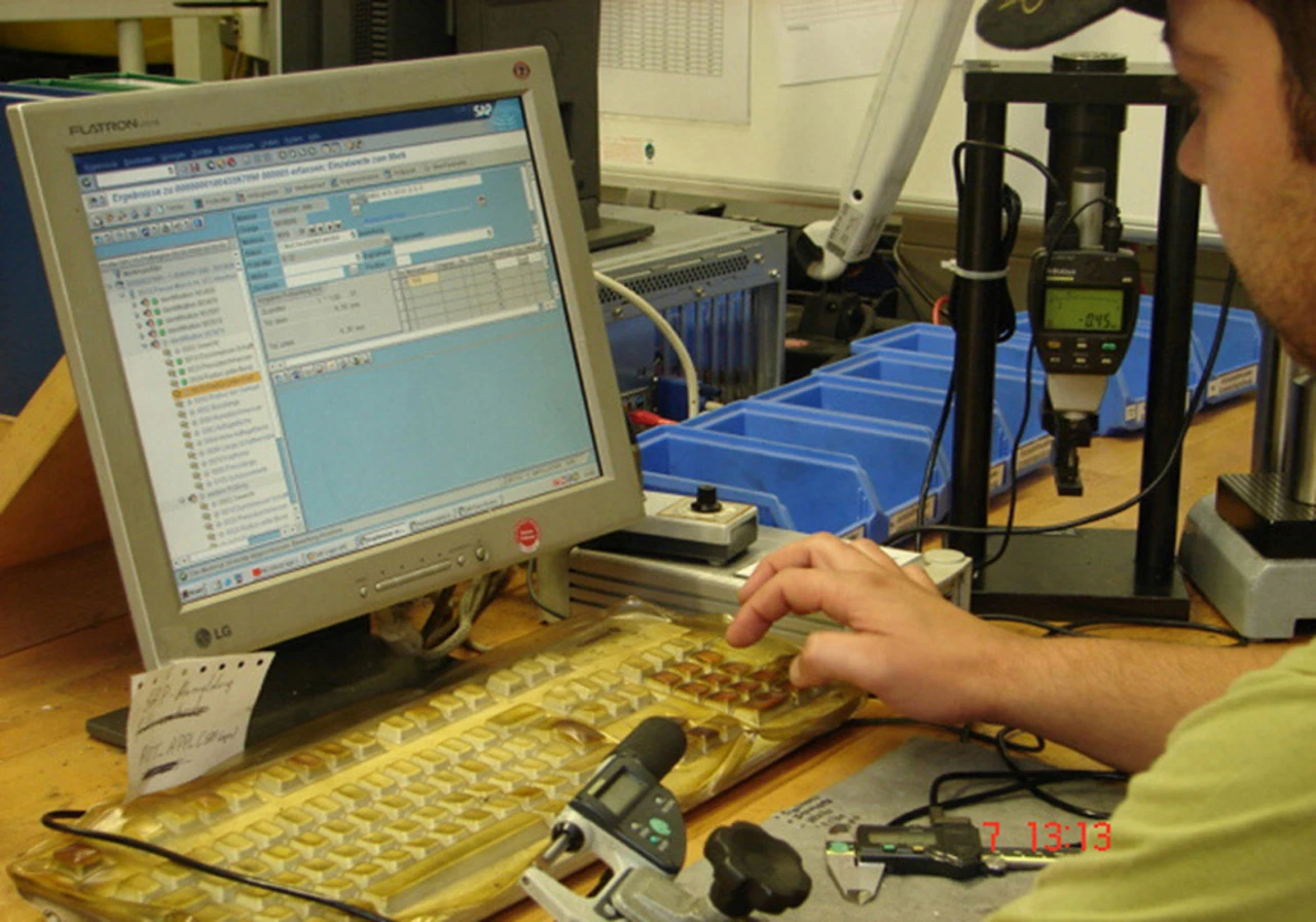 Für diesen Lösungsansatz sprechen in erster Linie die Durchgängigkeit und die sich daraus ergebende Transparenz: Vom Wareneingang bis zum Controlling sind sämtliche Produktions- sowie betriebswirtschaftliche Prozesse verknüpft eine wichtige Voraussetzung für das Qualitätsmanagement, das vor allem für Automobilzulieferer wie Arnold eine entscheidende Rolle spielt. In diesem sicherheitsrelevanten Bereich zwingen sowohl gesetzliche Auflagen als auch die Kunden zur Einhaltung und lückenlosen Dokumentation von Qualitätsstandards. Das Qualitätsmanagement umfasst bei Arnold daher die gesamte Lieferkette vom Wareneingang bis zur Auslieferung. Die einzelnen Arbeitsschritte, wie Fertigungsauftrag Anmelden, Material Abbuchen, Werkzeuge Reservieren und aus dem Werkzeuglager Ausfassen, sind im ERP-System realisiert. Auch die in vielen Unternehmen über separate QS-Lösungen abgebildeten Prozesse, zum Beispiel die Erfassung der Prüf-Ergebnisse und die Messmittel-Verwaltung, werden in der SAP-Umgebung vorgenommen.