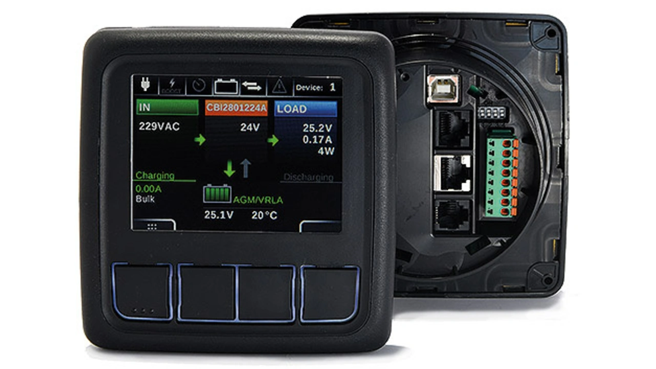 Voll ausgebaute DC-USV-Systeme von Adelsystem lassen sich mit Modbus RTU zur Remote-Monitoring-Kommunikation zusätzlich mit einem Bedienfeld und Webserver DPY351 koppeln (Bild 2). Damit stehen über RS-485, SNMP und Ethernet-TCP/IP Logfunktionen, Monitoring, Alarmbenachrichtigung und zahlreiche Konfigurationsmöglichkeiten zur Verfügung. Der Weitbereichseingang deckt 115 V und 230 V Netzspannung ab; eine dreiphasige Variante ist bereits in Planung.