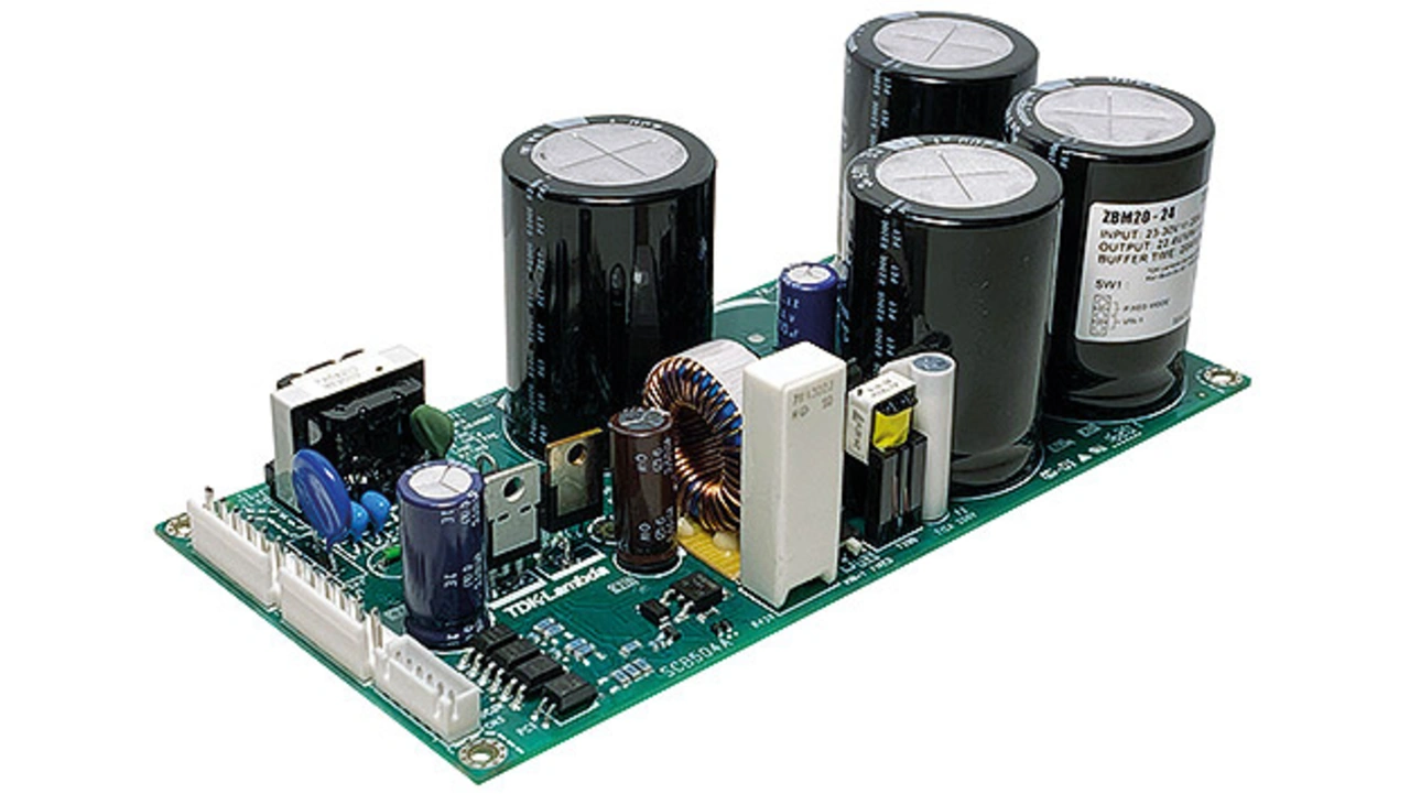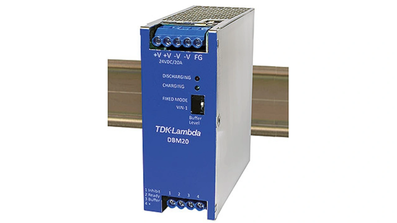 Die Puffermodule DBM20 und ZBM20 von TDK-Lambda arbeiten nicht mit Batterien, sondern de-facto wartungsfrei mit Kondensatoren. Die 49 mm breiten DBM20-Module (Bild 3) lassen sich ebenfalls auf der Hutschiene montieren, die ZBM20-Varianten (175 mm × 85 mm × 57 mm) dagegen sind als Open-Frame-Einbaumodule realisiert (Bild 4). Die Puffermodule lassen sich gut mit den Open-Frame-Stromversorgungen der CUS-Serie beziehungsweise den DIN-Rail-Netzteilen der DRx-Serien des gleichen Herstellers kombinieren, aber selbstverständlich auch mit Produkten anderer Hersteller.