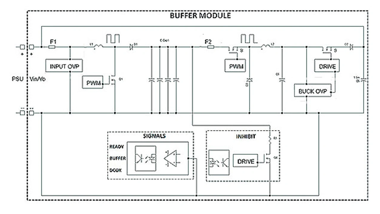 Als Energiespeicher kommen Elektrolytkondensatoren zum Einsatz. Damit entfallen regelmäßige Wartungsintervalle zum Batterietausch, und die Zuverlässigkeit steigt wesentlich. Mit einer internen Speicherspannung von bis zu 220 V erhöhen DC-DC-Wandler die Speicherkapazität, um die Kondensatoren optimal auszunutzen (E=½∙CU²) und hohe Wirkungsgrade zu erreichen, und sie halten die Ausgangsspannung konstant. Eine Einschaltstrombegrenzung und interne Sicherungen sind ebenfalls vorhanden. Die Sicherheitszulassung umfasst IEC/UL/CSA/EN 62368-1 mit CE-Kennzeichnung gemäß den Niederspannungs-, EMV- und RoHS-Richtlinien.