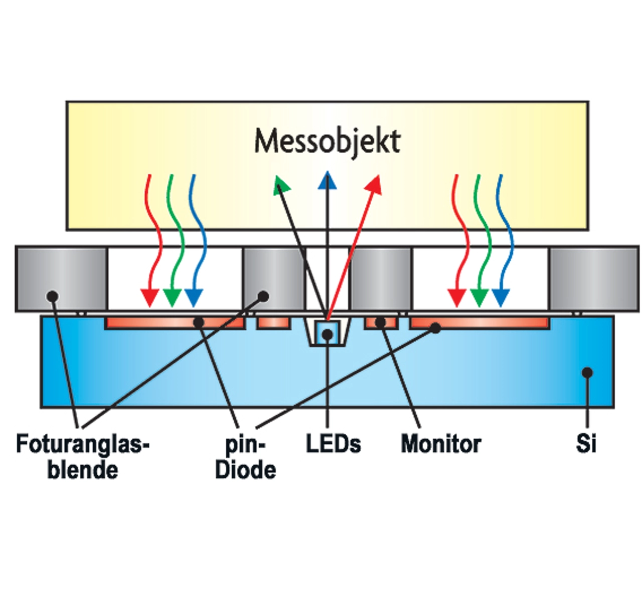 Realisiert wurde der Sensor mit Hilfe von Mikrosystemtechnik. Er basiert auf der früheren CiS-Entwicklung MORES (Mikro-Optischer REmissions-Sensor). Die weiterentwickelte Version »VIP« wurde verkleinert und misst nun 5,4 x 3,2 x 0,7 mm³. Auf einem gemeinsamen Substrat sitzen zwei LEDs und zwei pin-Fotodioden, eine Monitor-Diode sowie eine abgedeckte Diode zur Messung der Chip-Temperatur. Der gesamte Aufbau basiert auf einer patentierten Silizium-Glas-Keramik.(ag/le)