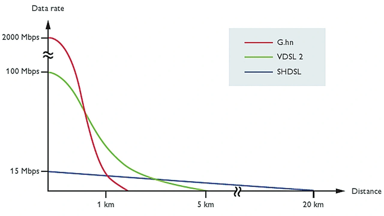 Mit der G.hn-Technologie lassen sich die physikalischen Grenzen der Ethernet-Übertragung zumindest in puncto Reichweite verschieben: Über einfache Zweidrahtleitungen können Anwender Distanzen bis 1 km bei einer Datenrate von maximal 1 Gbit/s realisieren.