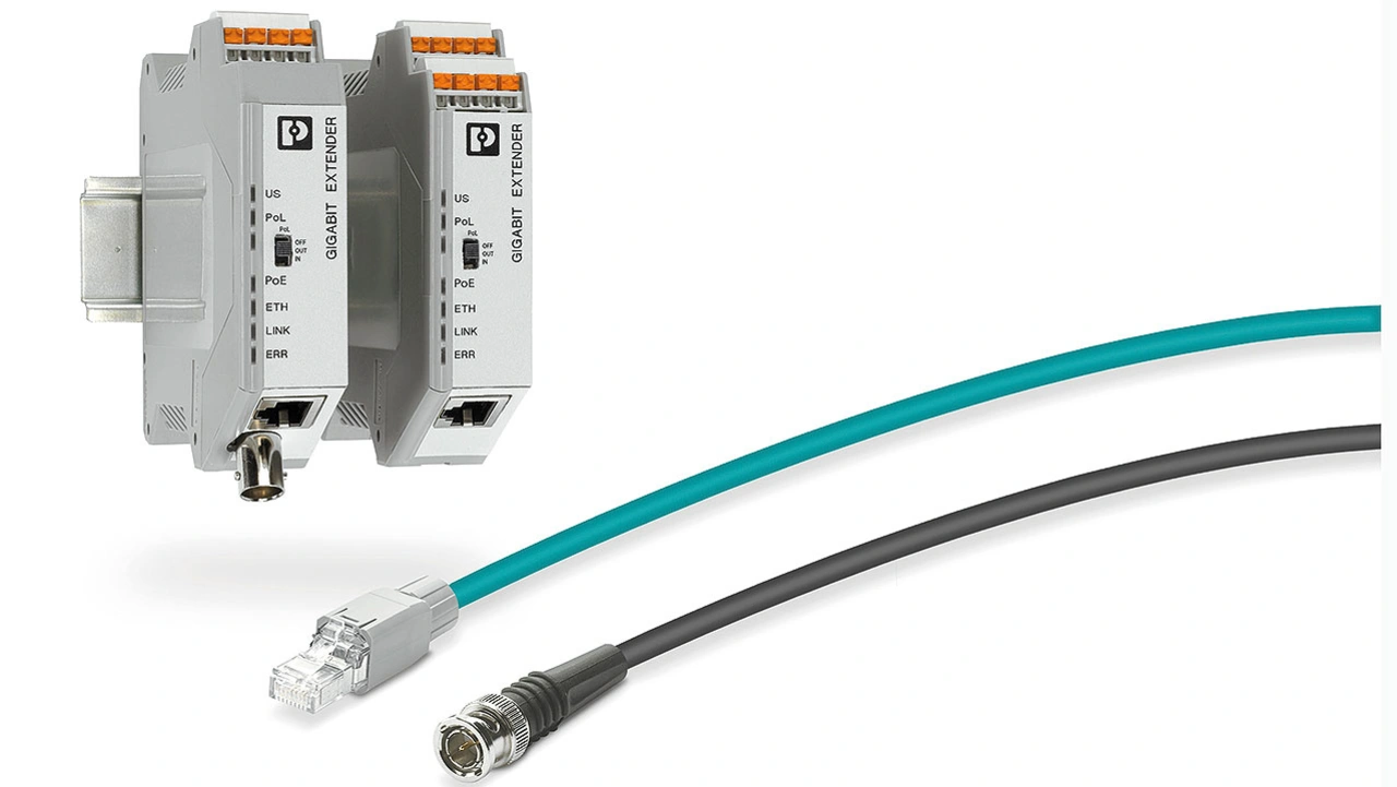 Das Besondere der Technologie be- steht nicht nur in der Kombination aus Datenrate und großer Reichweite: Mit G.hn lassen sich unterschiedliche Übertragungsmedien wie Twisted Pair, Koaxialleiter oder nicht genutzte Stromkabel verwenden. Die Technologie ermöglicht beispielsweise den Einsatz der vorhandenen Verkabelung, sodass Aufwand und Kosten sinken. Angesichts dessen hat Phoenix Contact die Geräte der Produktserie »Gigabit Ethernet Extender« entwickelt, die die Ethernet- in eine G.hn-Kommunikation transformieren. Die Gigabit Ethernet Extender sind wahlweise mit Anschlüssen für Twisted-Pair-Leitungen auf eine Push-in-Klemme oder mit einer BNC-Buchse zur Anbindung von Koaxialkabeln erhältlich. Immer dann, wenn Ethernet-Verbindungen mehr als 100 m betragen, müssen Anwender andere Lösungen als die übliche LAN-Verbindung finden. Hier bietet sich die G.hn-Technologie als kostensparende Alternative zu Lichtwellenleitern an. Bei Verwendung der bestehenden Kupferkabel lassen sich teure Neuinstallationen vermeiden (Bild 3).