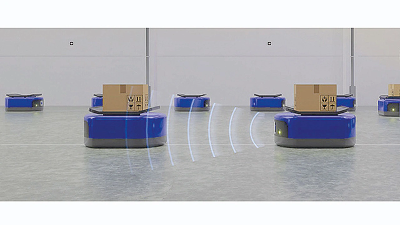 In fahrerlosen Transportsystemen können Radarsensoren als Ergänzung zu Laserscannern oder anderen optischen Abtastverfahren zuverlässig den Fahrweg nach Hindernissen abtasten und rechtzeitig vor einer Kollision das Fahrzeug stoppen (Bild 7).