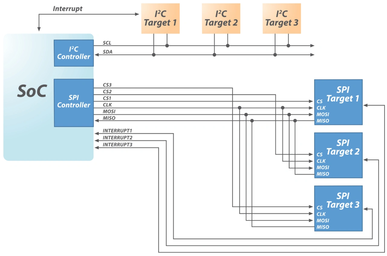 Viele der heutigen IIoT-Geräte verwenden Schnittstellen wie I2C (Inter-Integrated Circuit), SPI (Serial Peripheral Interface) und UART (Universal Asynchronous Receiver-Transmitter), die sich in den vergangenen 30 Jahren zu den wichtigsten Schnittstellen im Toolkit der Embedded-Hardware-Ingenieure entwickelt haben. Diese Schnittstellen haben der Embedded-Elektronik-Industrie seit ihrer Einführung in den späten 70er- und frühen 80er-Jahren gute Dienste geleistet.