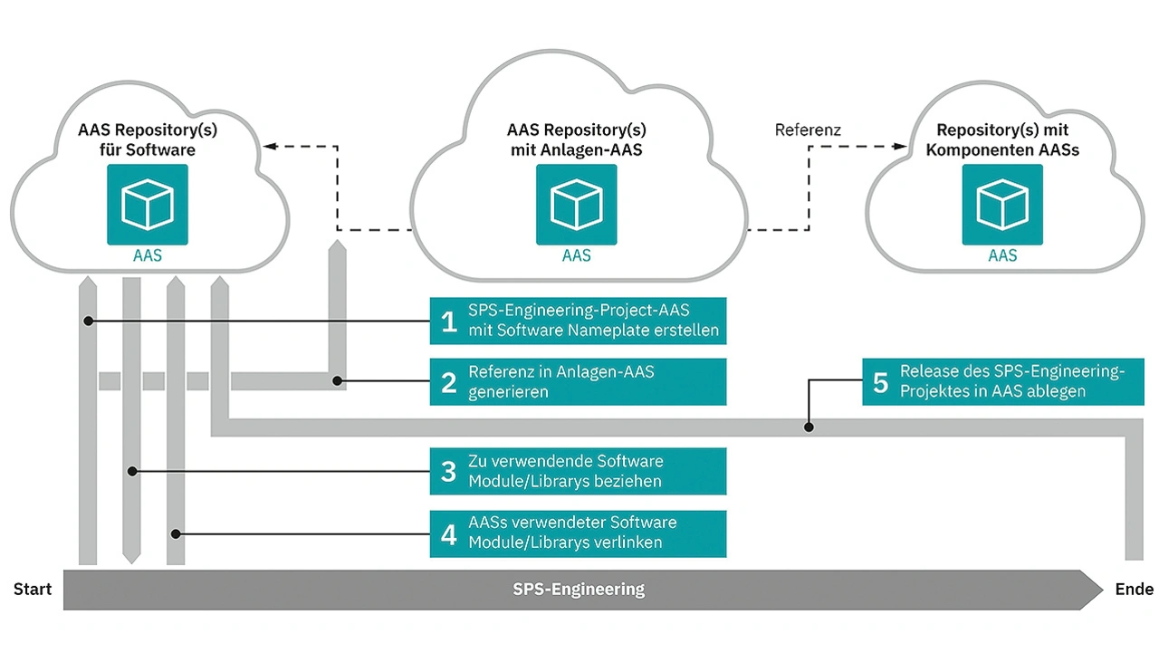 ➔ Werden im Laufe des SPS-Engineerings Softwarebibliotheken benötigt, lassen sich diese direkt aus dem AAS-Software-Repository beziehen.