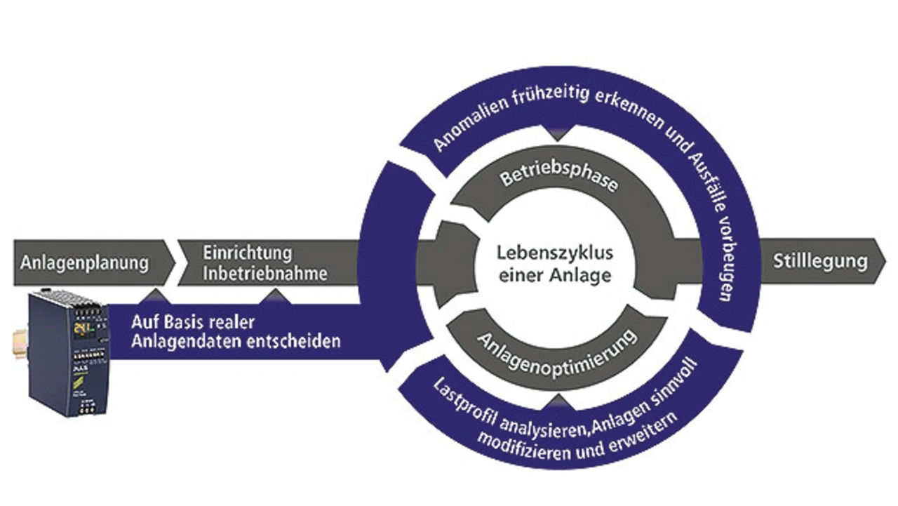 Beide Erfassungsmodi – Echtzeit- und Aufzeichnungsmodus – liefern bei der Planung, dem Betrieb und der Erweiterung einer Anlage wertvolle Informationen auf Basis realer Anlagendaten. Anomalien während der Betriebsphase können Anlagenentwickler somit frühzeitig erkennen und Ausfällen vorbeugen, um einen ungestörten Betrieb zu ermöglichen. Außerdem erlaubt das Netzteil ein Nachrüsten von bestehenden Anlagen (Retrofit) und die Analyse des Lastprofils (Bild 2).
