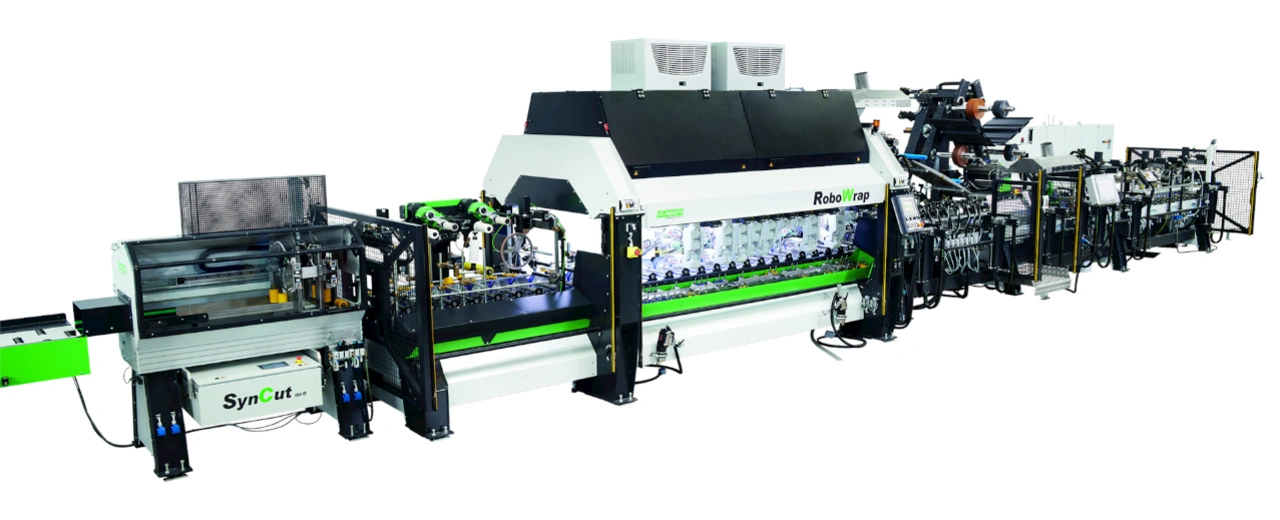 Diese zusätzlichen Fähigkeiten werden in den Kaufpreis der Maschine, der rund 1,1 Millionen Euro beträgt, und in die Wartung integriert. Wir haben mit diesen Funktionalitäten ein absolutes Alleinstellungsmerkmal am Markt. Derzeit befinden wir uns mit einem großen Kunden im Testbetrieb, zusammen mit 21 Maschinen eines Mitbewerbers und zwei unserer Standard-Anlagen. Und obwohl der RoboWrap noch nicht final abgenommen ist, erreicht er bereits rund 30 Prozent der gesamten Produktionskapazität. Das heißt, ein RoboWrap könnte bis zu sieben herkömmliche Kaschiermaschinen ersetzen. Bei drei Mitarbeitern pro Maschine im Vier-Schicht-Betrieb entspricht das 84 Werkern pro Tag.