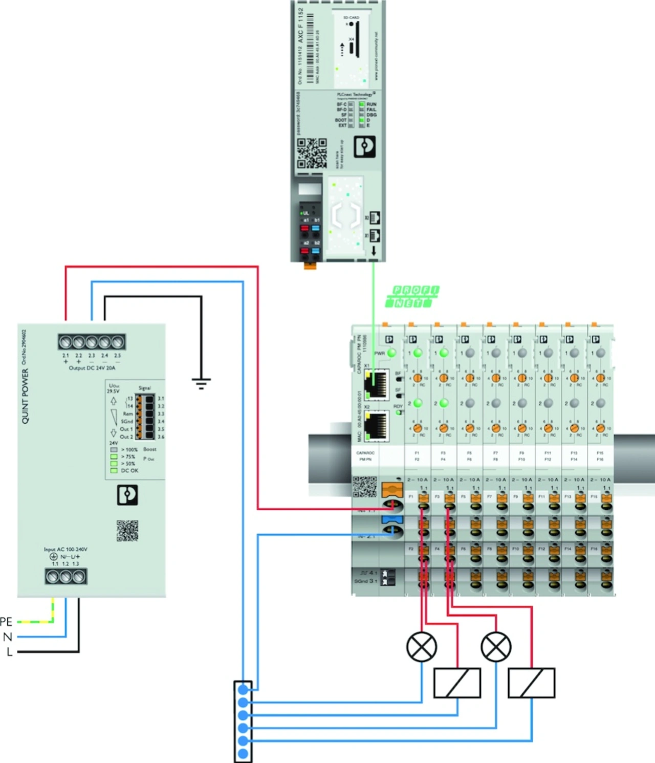 Durch den integrierten Zwei-Draht-Bus zwischen der Stromversorgung und dem Geräteschutzschaltersystem lässt sich Quint Power einfach und kostengünstig in das Netzwerkprotokoll von Caparoc einbinden. Die Profinet-Schnittstelle des Geräteschutzschaltersystems ermöglicht nun eine vollständige Transparenz sowie den Zugriff auf das Gesamtsystem. Darüber hinaus können Anwender per Webserver vor Ort auf Betriebszustände, Fehlermeldungen und Einstelldetails des Systems zugreifen. Die Stromversorgungskombination schafft somit die vollständige Datenkonsistenz von der Primärseite bis zu den abgesicherten Verbraucherkreisen (Bild 2).