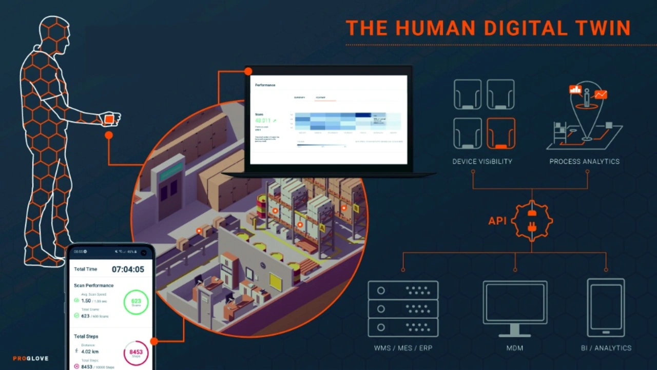 Was aussieht wie ein einfacher Handgelenk-Scanner, ist bei ProGlove der Eintritt zu einer teilautomatisierten, Industrie-4.0-gesteuerten Produktion und Logistik – der intelligente Handschuh liefert mit dem Human Digital Twin eine digitale Prozesskette und die Verbindung zwischen Mensch und IIoT.