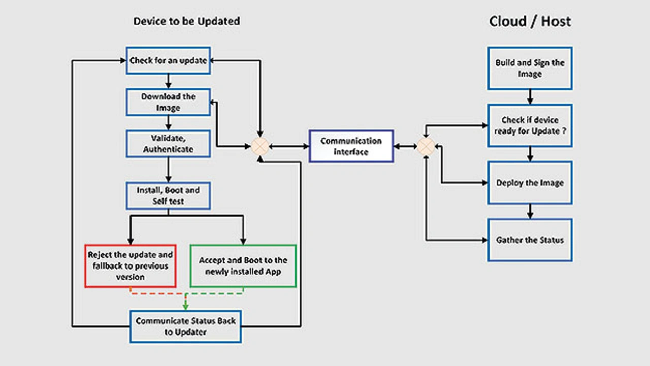 Intelligente Geräte werden immer komplexer, softwareorientierter und vernetzter – sie wachsen über die traditionellen Produktgrenzen hinaus. Das bedeutet auch, dass die Geräte regelmäßig weiterentwickelt und an neue Trends, Standards und Sicherheitsanforderungen angepasst werden müssen. Um einen reibungslosen und gesicherten Betrieb zu ermöglichen, ist daher ein strategischer Ansatz für OTA-Updates sinnvoll. Die OTA-Update-Technologie ermöglicht die Aktualisierung von Firmware aus der Ferne, was jedoch mit einer Reihe von Herausforderungen verbunden ist (Bild 1).