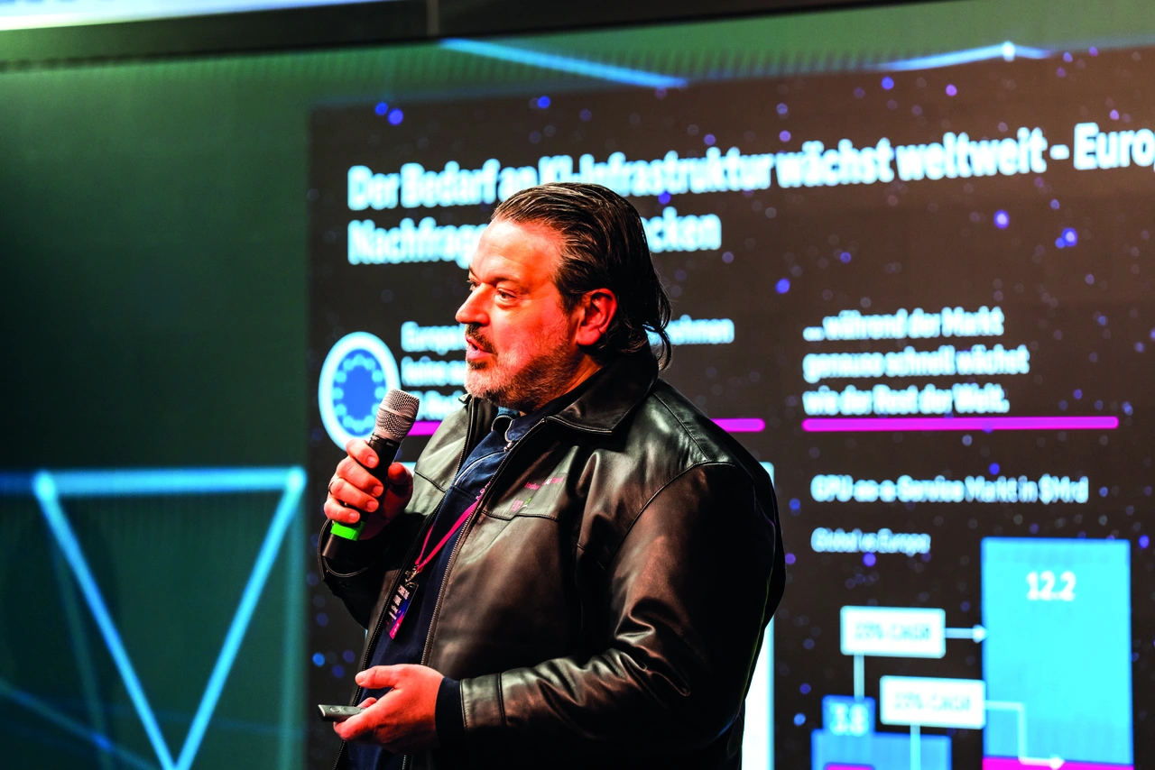 Bevor es ans Testen und Ausprobieren geht, lohnt ein Blick auf die Anwendungsfälle der Industrial AI Cloud, die im Innovation Center im Mittelpunkt stehen. Andreas Schlegel (Bild 3), Leiter Transformation bei T-Systems, und Industrieexperte Björn Weidenmüller haben sie bei der Eröffnung konkret benannt. Ihr Ausgangsbefund: Die deutsche Industrie sei bereits zu 43 bis 50 Prozent automatisiert – aber in starren Einzelschritten, die nicht miteinander kommunizieren. Genau hier setze die neue Infrastruktur an.