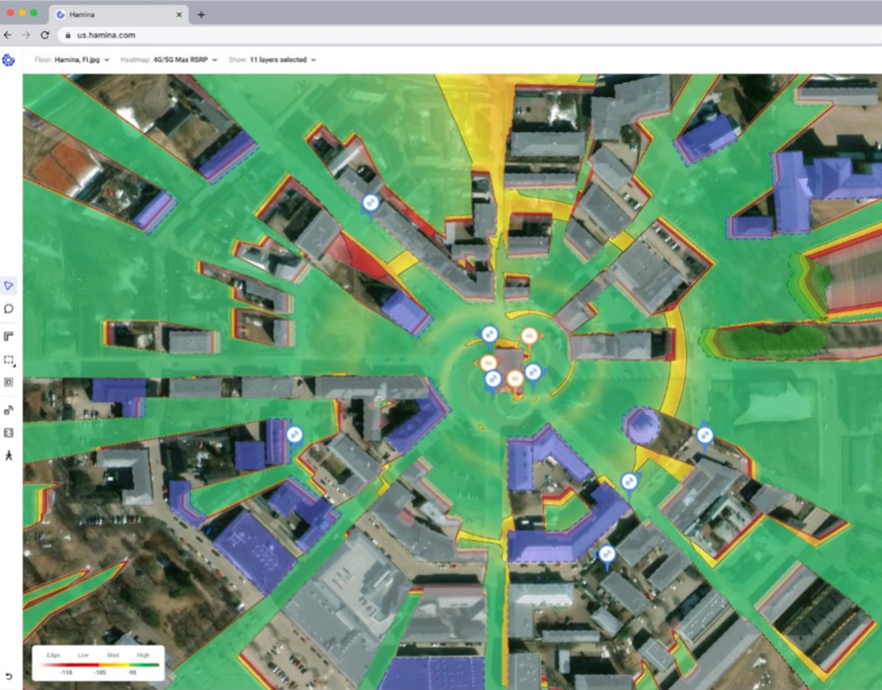 Ein Hochhaus mit Stahlbeton muss man in der anspruchsvollen Netzplanung anders angehen als eine Leichtbauhalle. Gelände, Bewuchs, Bebauung – alles spielt eine Rolle, genauso wie rechtliche Bestimmungen und Besitzverhältnisse. Wie weit reicht das Signal, wie gut sind Anbindung und Qualität? Wo müssen die Masten stehen, wo braucht man Verstärker oder eventuell weitere Masten - und welche Gebiete lassen sich schlicht und einfach nicht versorgen? Wo sind die blinden Flecken?