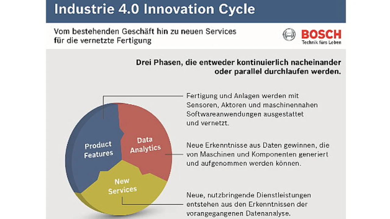 Bei der Umsetzung von Industrie 4.0 zögern viele Unternehmen noch; sie scheinen auf die alles entscheidende Schlüsseltechnologie zu warten. Ein Whitepaper von Bosch Software Innovations soll ihnen als Leitfaden dienen – mittels des »Industrie-4.0-Innovation-Cycle« als neuem Drei-Stufen-Modell.