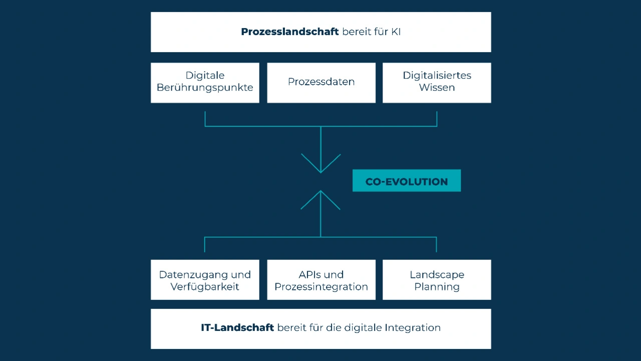 - Prozesse & Strukturen (Ich soll): KI wird in Prozesse integriert und Strukturen passen sich an die neuen Anforderungen an.