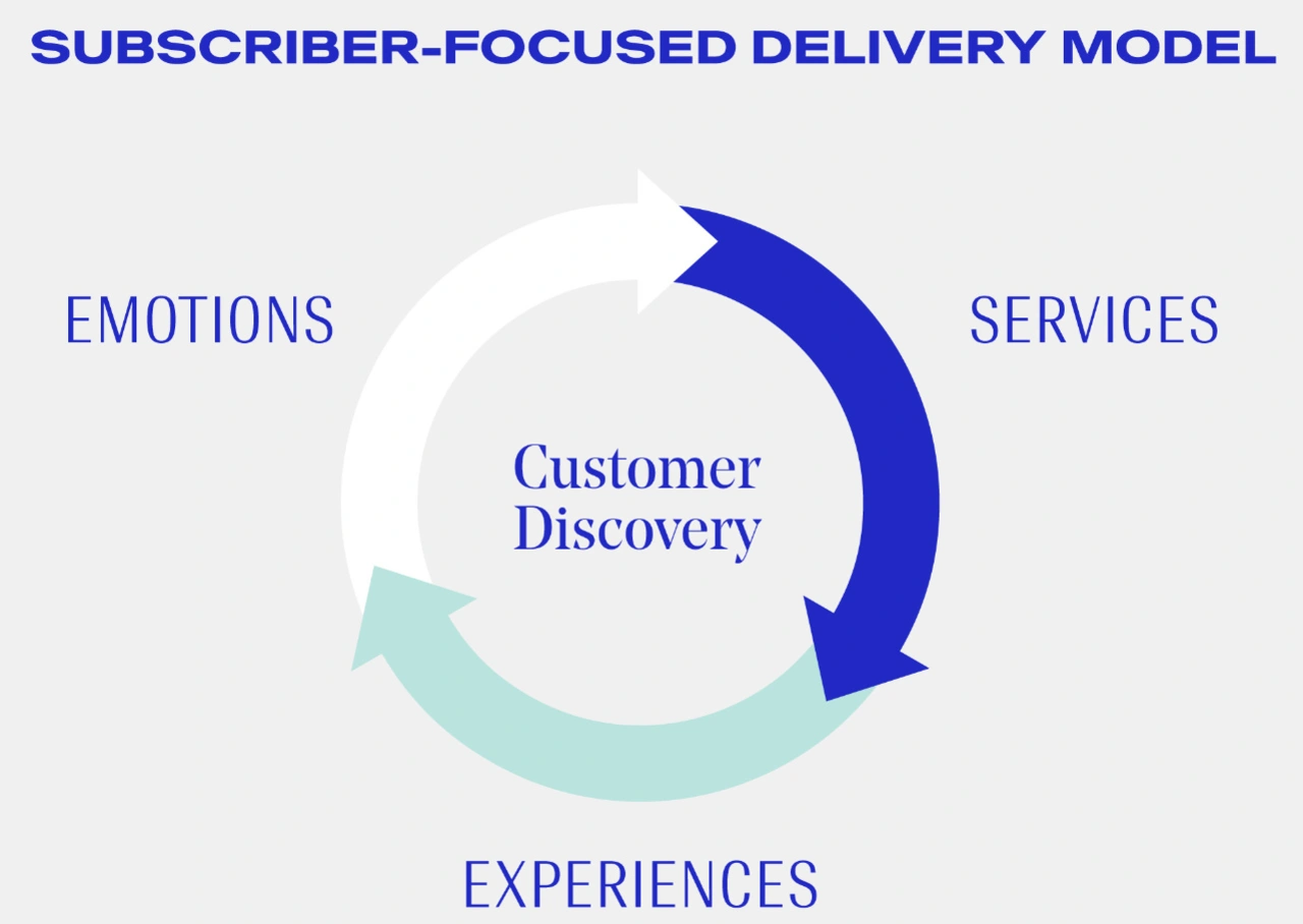 Die Subscription Economy rückt stattdessen konsequent die Kunden und ihre Bedürfnisse und Ansprüche in den Fokus aller unternehmerischen Aktivitäten. Nur mithilfe einer 360-Grad-Sicht gelingt es den Unternehmen, die Anforderungen ihrer Klientel bestmöglich zu verstehen und die dafür nötigen Produkte und Services passgenau abzustimmen. Die daraus entstehende Flexibilität schätzen die Kunden und sind dann gerne bereit, für bedarfsgerechtere Angebote zu bezahlen. Zusätzlich ergeben sich durch modulare Angebotsbausteine neue Umsatzgelegenheiten und die Möglichkeit, Kunden langfristiger an sich zu binden, weil Unternehmen im Laufe der Customer Discovery immer das richtige Subscription-Service-Profil anbieten können. Die altbekannte Customer Journey hat damit ausgedient: Heutzutage gibt es keine „Final Destination“ mehr, sondern die Beziehung zwischen Kunde und Unternehmen gleicht einer kontinuierlichen Entdeckungsreise, in deren Verlauf sich das Unternehmen und seine Abonnenten gleichermaßen stetig weiterentwickeln: In einem Kreislauf aus kundenorientierten Services, den daraus resultierenden positiven Erfahrungen der Abonnenten sowie einer sich daraus speisenden emotionalen Bindung ergibt sich die Option, die gegenseitige Beziehung beider Partner immer weiter zu entwickeln.