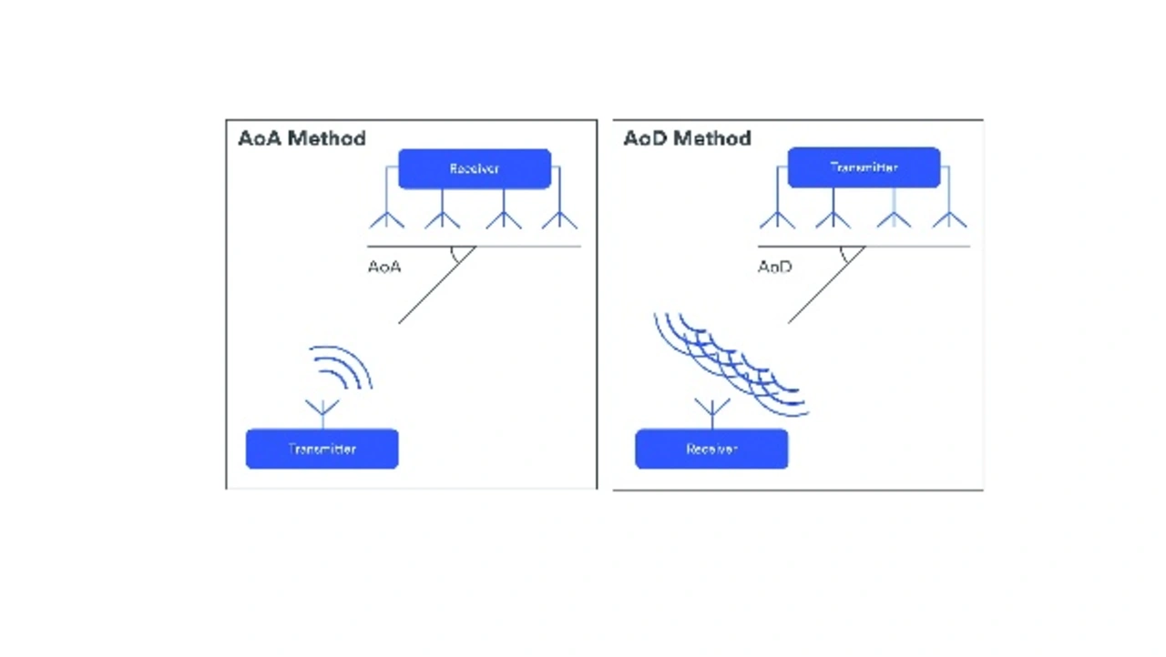 Um die Richtung eines Signals zu bestimmen, muss entweder der Empfänger (Angle of Arrival, AoA) oder der Sender (Angle of Departure, AoD) eines Standortsignals über ein fix angeordnetes Antennengitter verfügen (Bild 4). Bei beiden Varianten bestimmt der Empfänger über den Phasenunterschied mehrerer Signale mittels IQ-Verfahren (In-Phase-&-Quadrature-Verfahren) die Richtung, aus der das Signal kommt. Ein IQ-Datensatz enthält Amplitude und Phase des empfangen Signals. Die Daten werden vom Funkempfänger an die Anwendungsebene weitergeben, die anschließend mit Hilfe von Algorithmen die Richtung bestimmt.