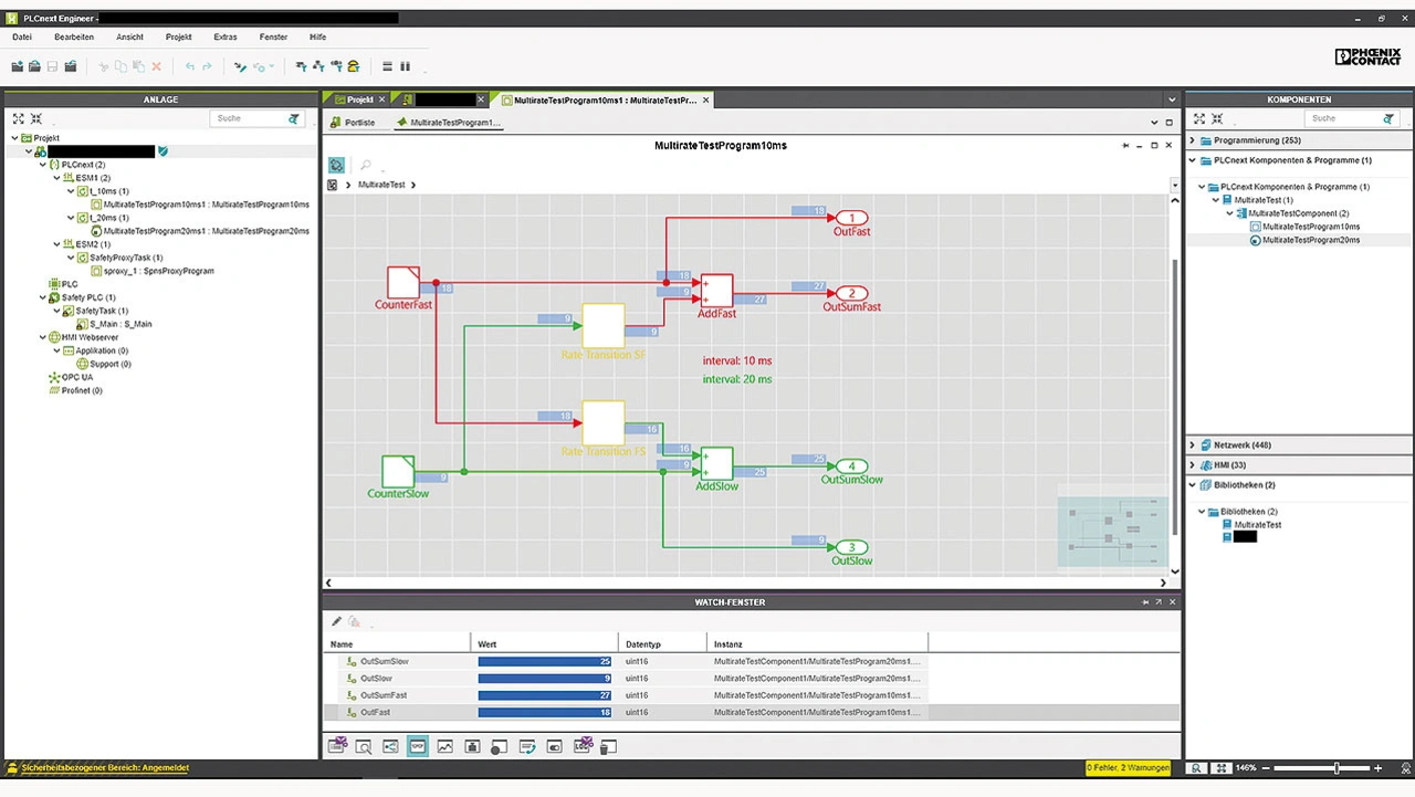 Viewer for Simulink stellt eine Alternative zur Verfügung. Über das Add-in für die PLCnext-Steuerungen lässt sich der gesamte Modellinhalt gemeinsam mit den bestehenden Signalen visualisieren. Limitierungen kann der Entwickler konfigurieren. Gleiches gilt für den Inhalt von Referenzmodellen. Ferner können sämtliche Signale verändert oder auf einen bestimmten Wert gezwungen werden. Bisher funktionierte der Viewer for Simulink nur für PLCnext-Programme. Nun ist auch eine Erweiterung auf Funktionsbausteine für die PLCnext-Modelle geplant (Bild 2).