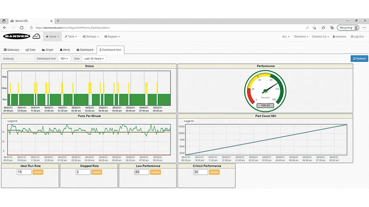 Eine drahtgebundene oder drahtlose Verbindung zur Verteilung der gesammelten Daten an Edge-Computing-Ressourcen und/oder die Cloud, wie etwa den Cloud Data Service (CDS) von Banner Engineering, der Datenvisualisierung und Einblicke in die Maschinenleistung bietet sowie E-Mail- oder Textwarnungen zur Unterstützung von Maschinenbetrieb, Wartung und Reparaturen in Echtzeit sendet (Bild 2).
